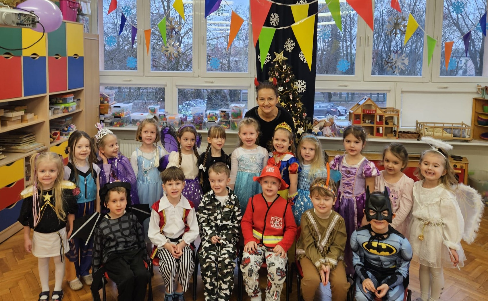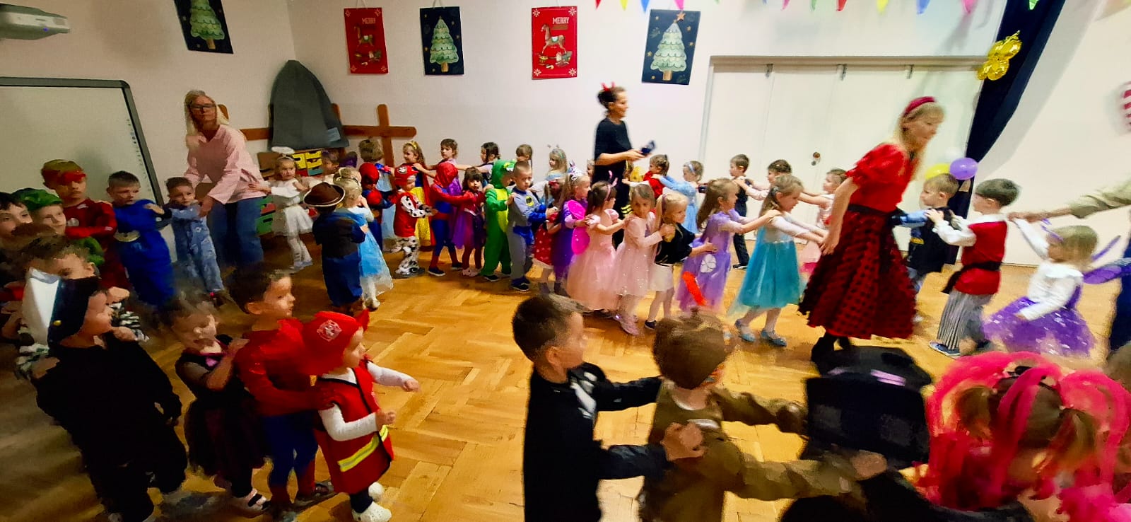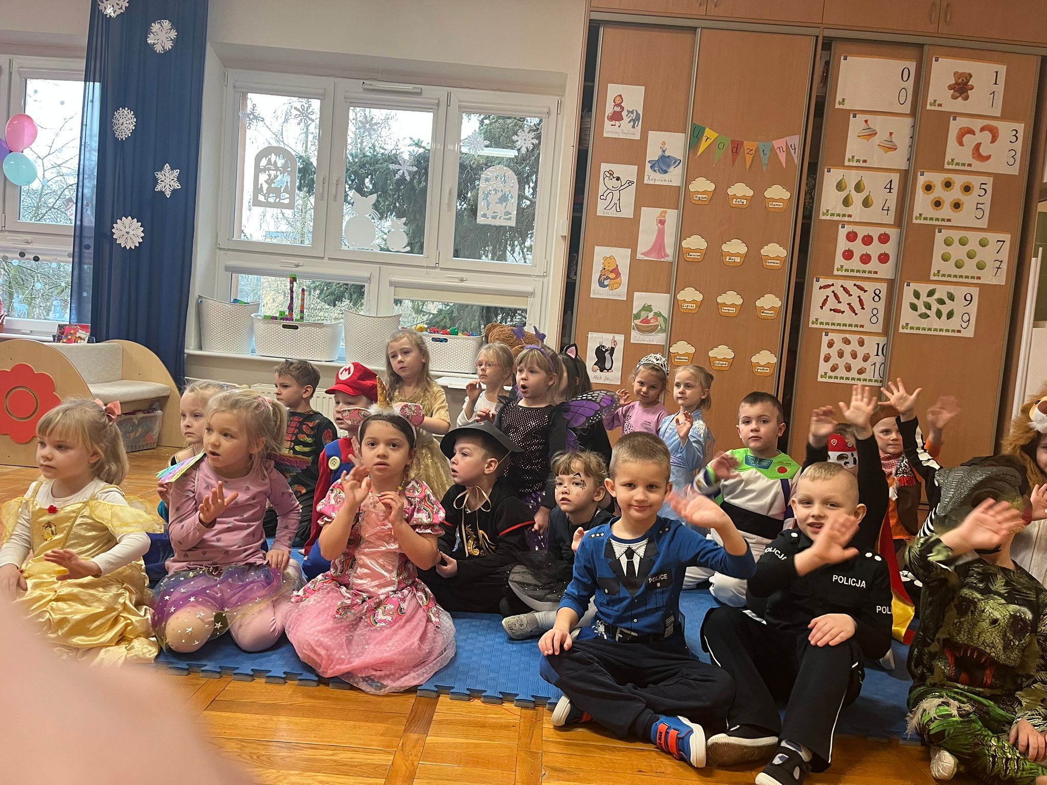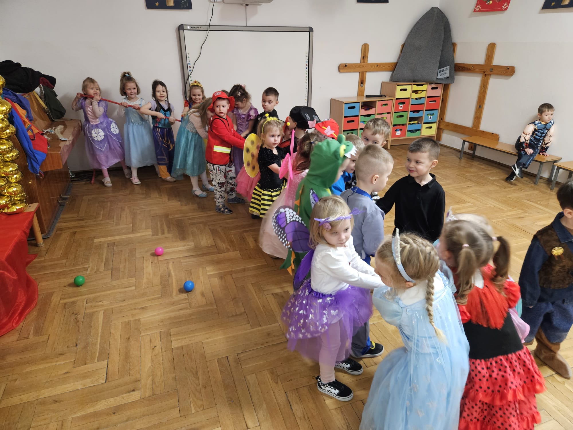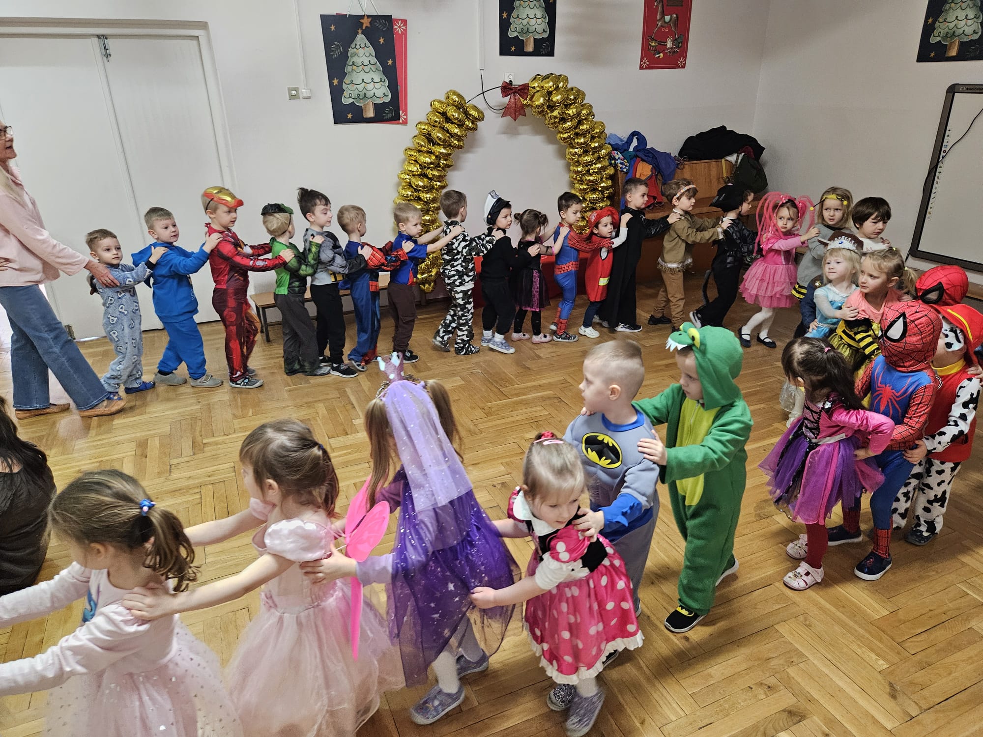 Wszystkie uroczystości zaliczone więc teraz czas na zabawę - wspólną zabawę. Czas na nasz bal karnawałowy. Od rana po przedszkolu spacerowały postaci z bajek. Zrobiło się kolorowo i bardzo wesoło. Zapraszamy zobaczcie jak to wszystko wyglądało.