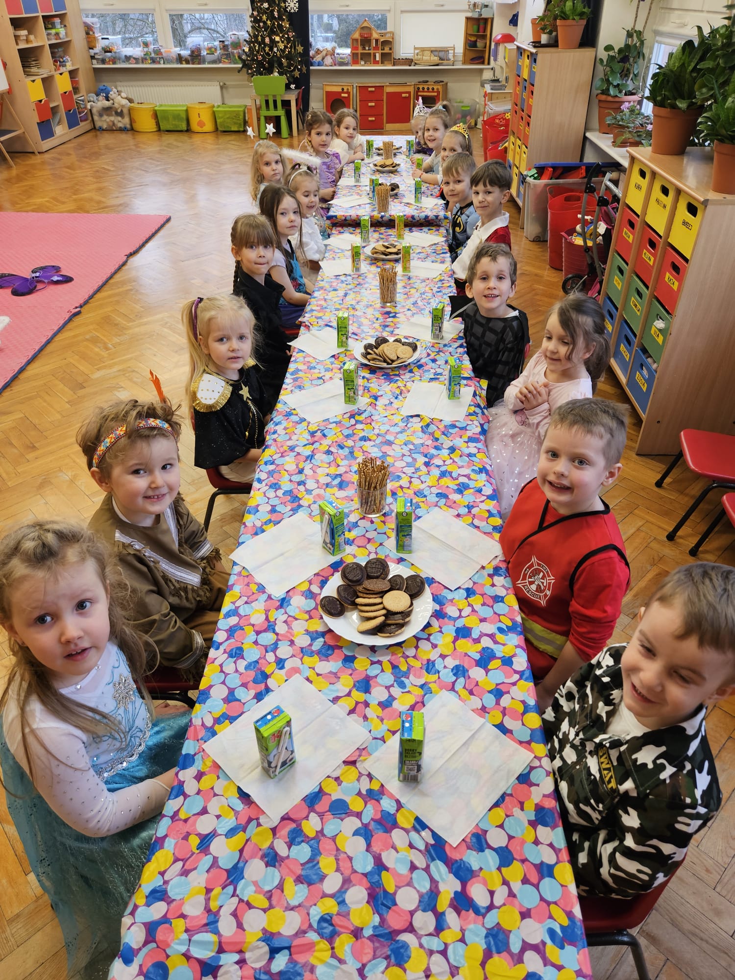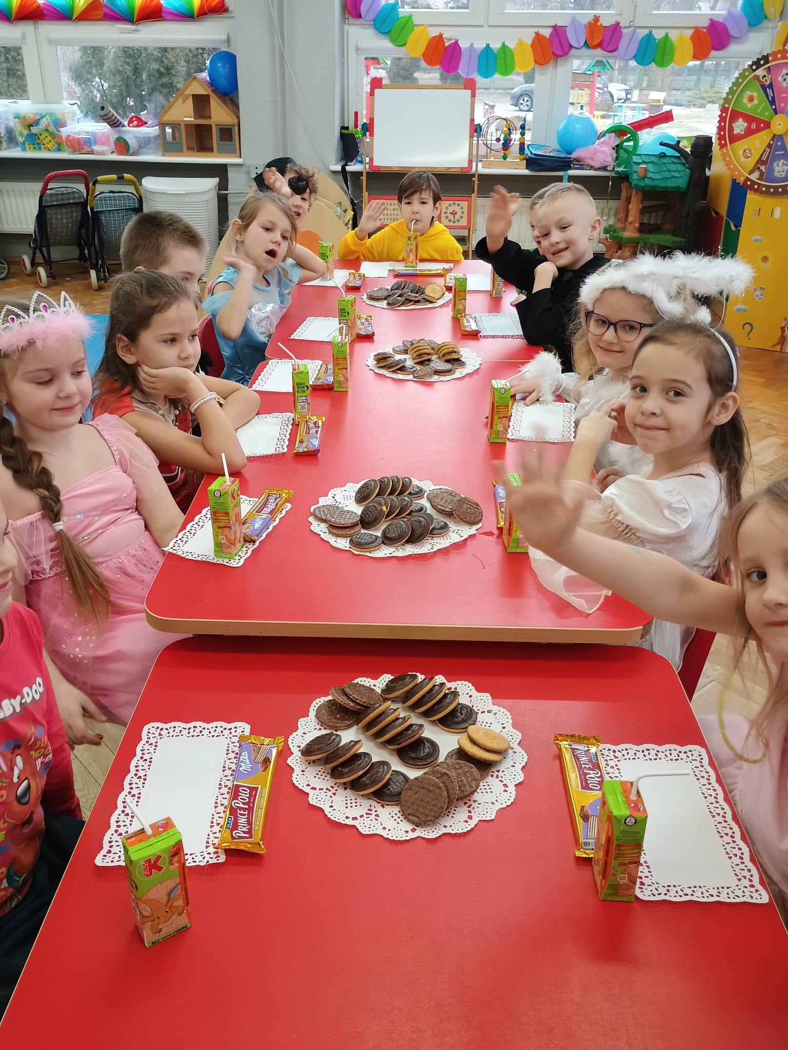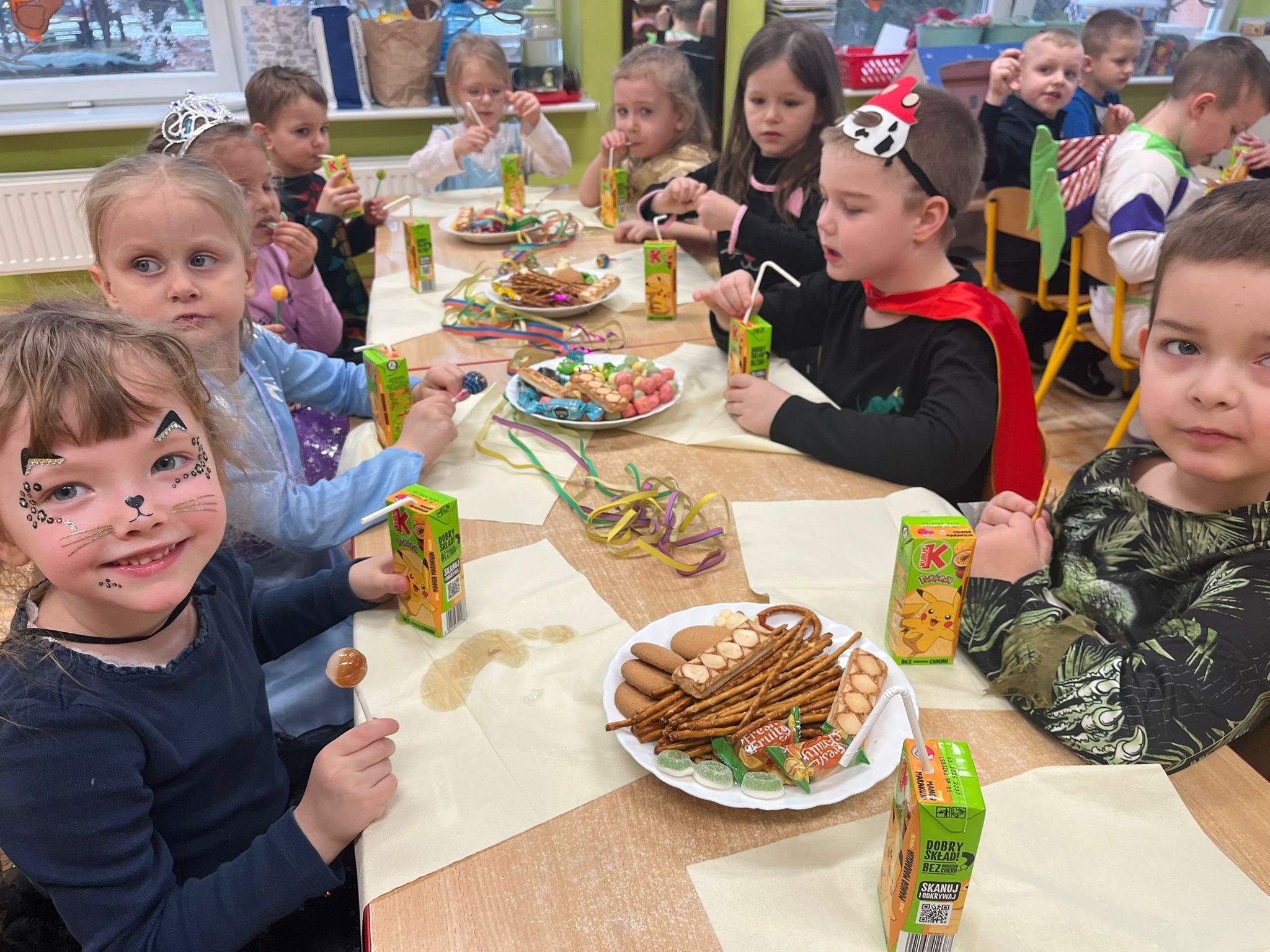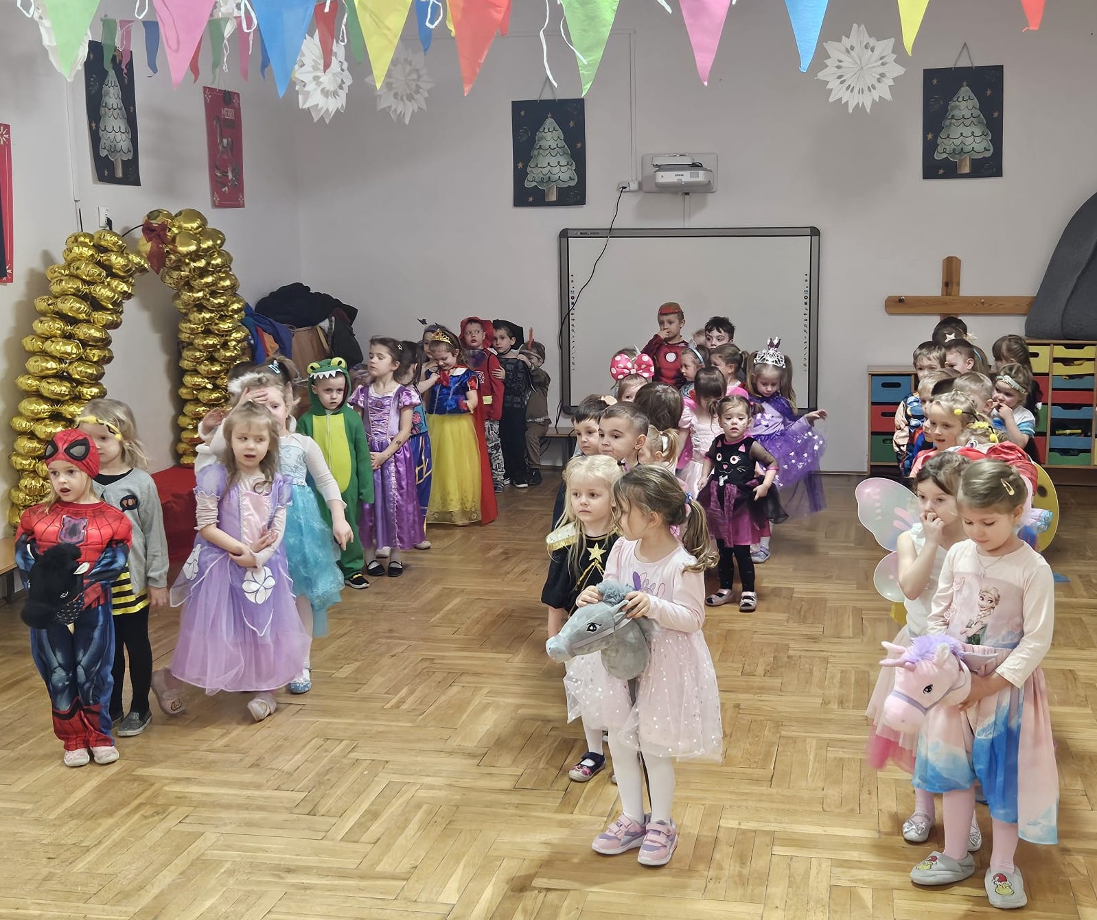 Wszystkie uroczystości zaliczone więc teraz czas na zabawę - wspólną zabawę. Czas na nasz bal karnawałowy. Od rana po przedszkolu spacerowały postaci z bajek. Zrobiło się kolorowo i bardzo wesoło. Zapraszamy zobaczcie jak to wszystko wyglądało.