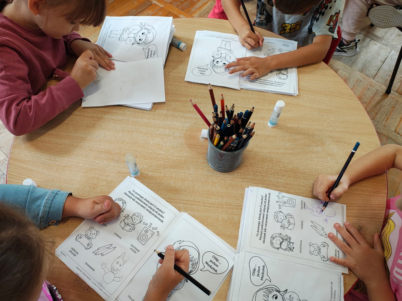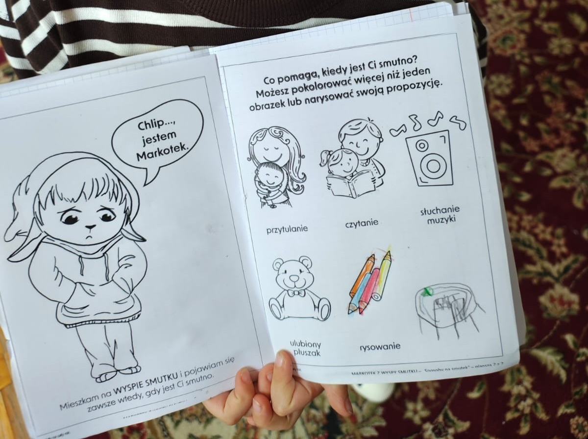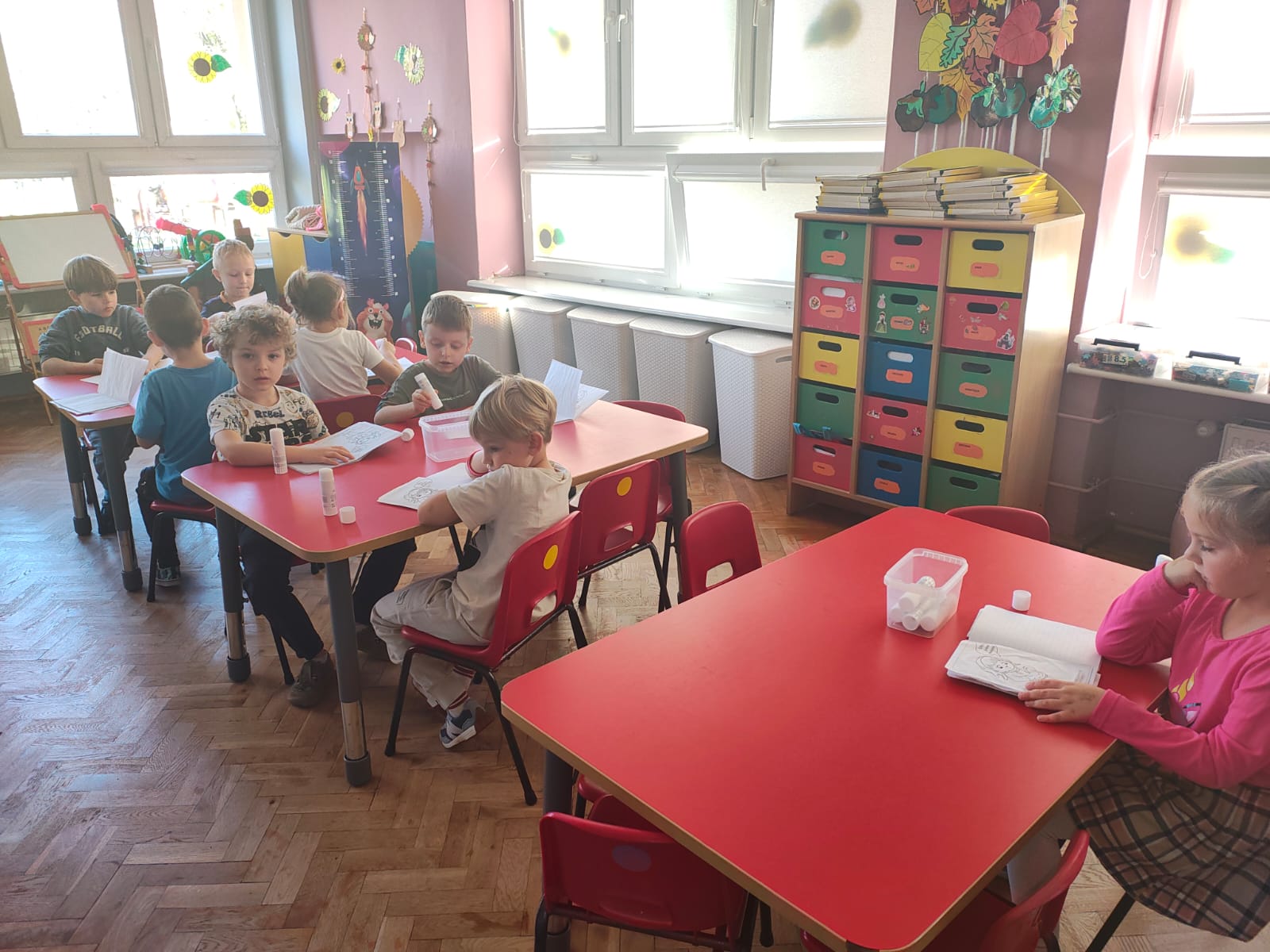 Z panią Kasią naszą panią psycholog realizujemy program "Czuciaki". Uczymy się rozpoznawać różne emocje i radzić sobie z nimi. Dziś poznaliśmy Smutek - Markotek. Nie bardzo lubimy go choć czasami się pojawia w naszym życiu.