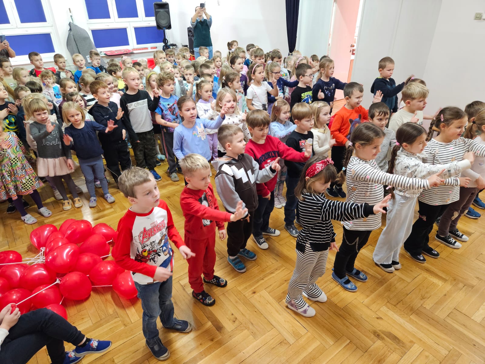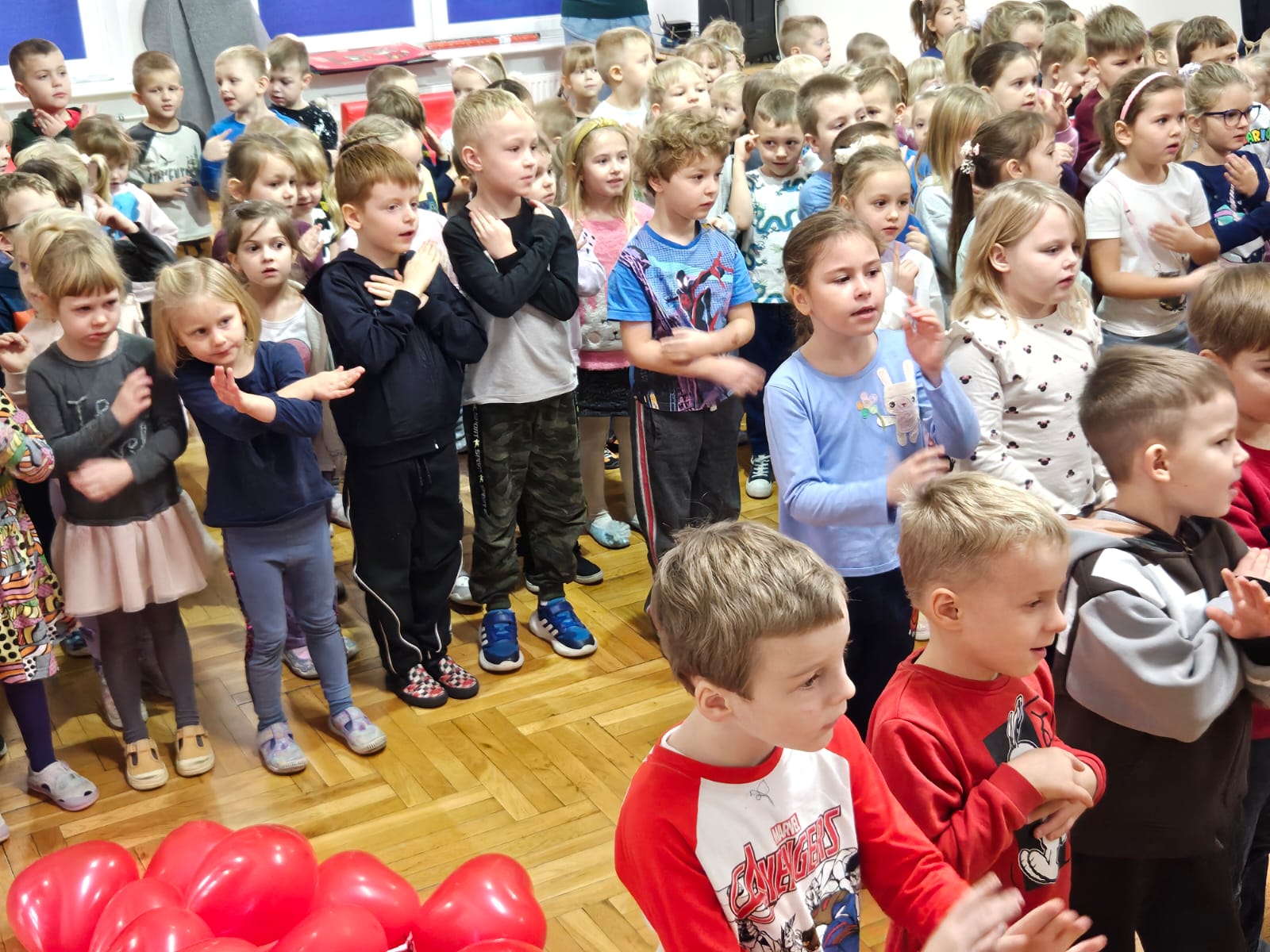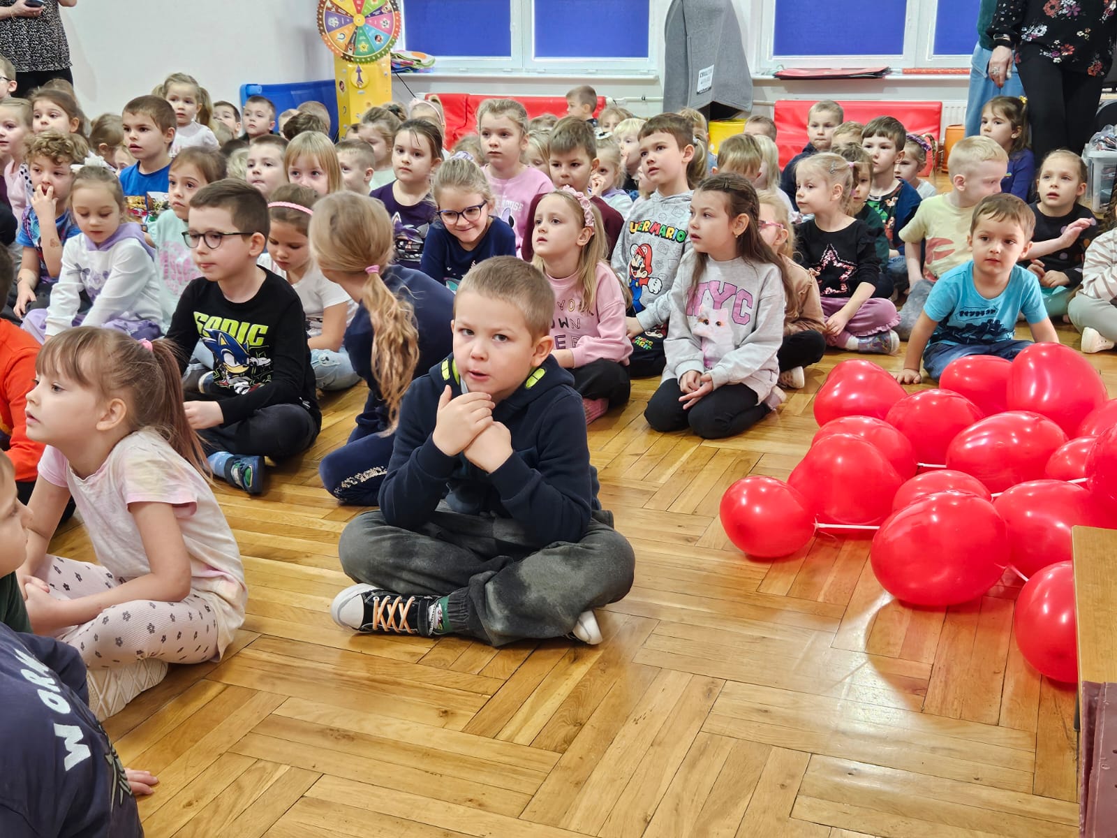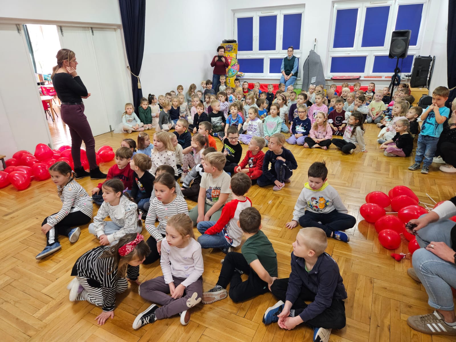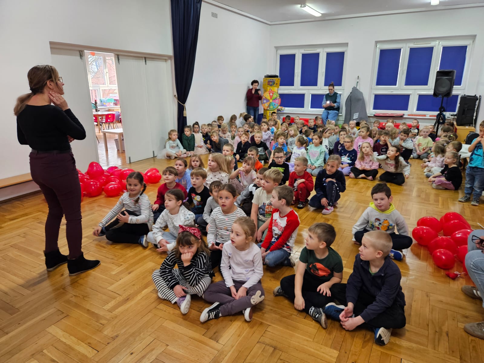 Dołączyliśmy się do Kampanii Ogólnopolskiej "Dzieciństwo Mocy Bez Przemocy". Rozmawialiśmy o przemocy z naszą panią psycholog. Potem otrzymaliśmy od niej czerwone balony w kształcie serc i ruszyliśmy w korowodzie ulicami osiedla. Wszyscy mogli nas zobaczyć i naszą dziecięcą radość.