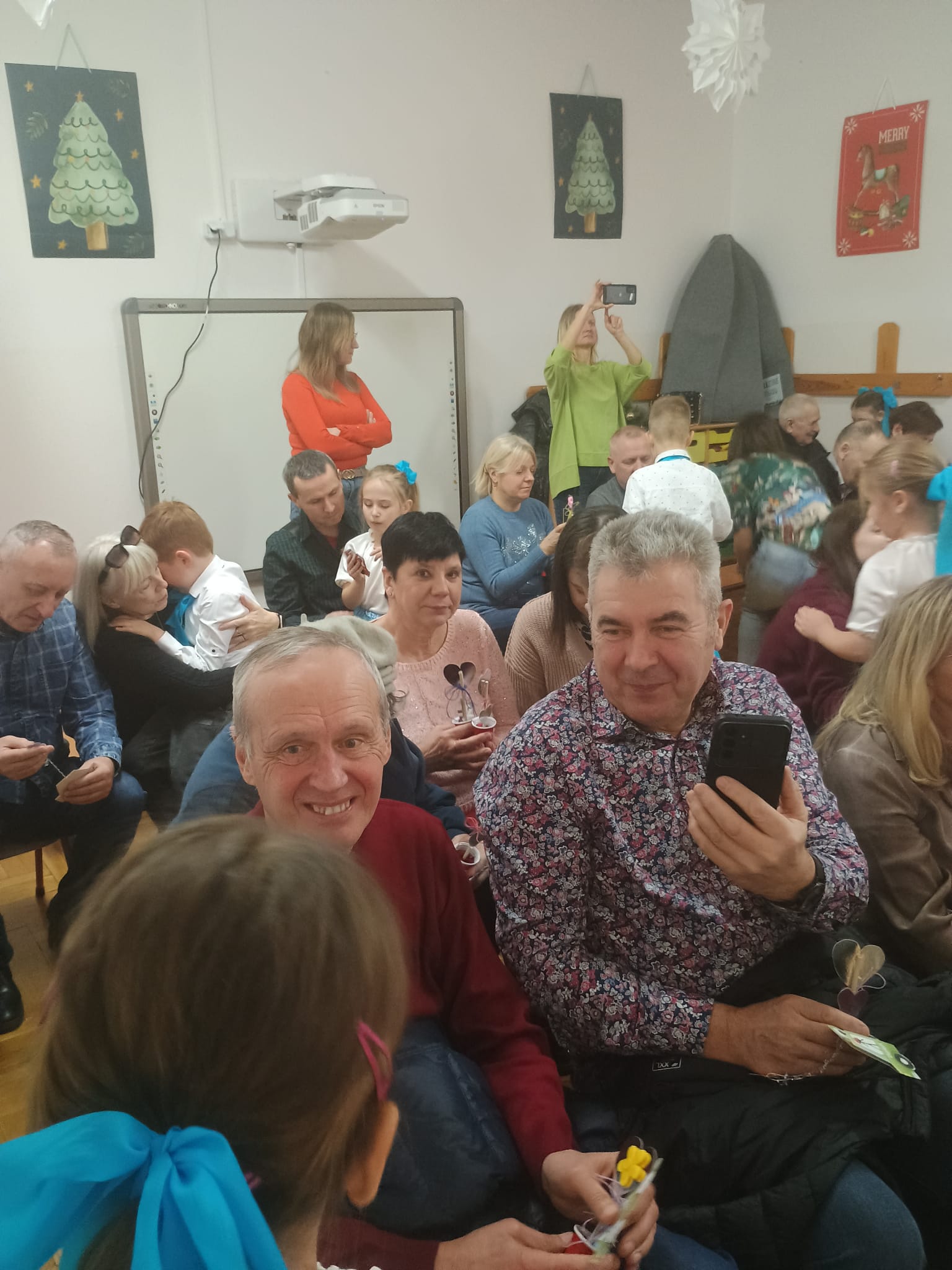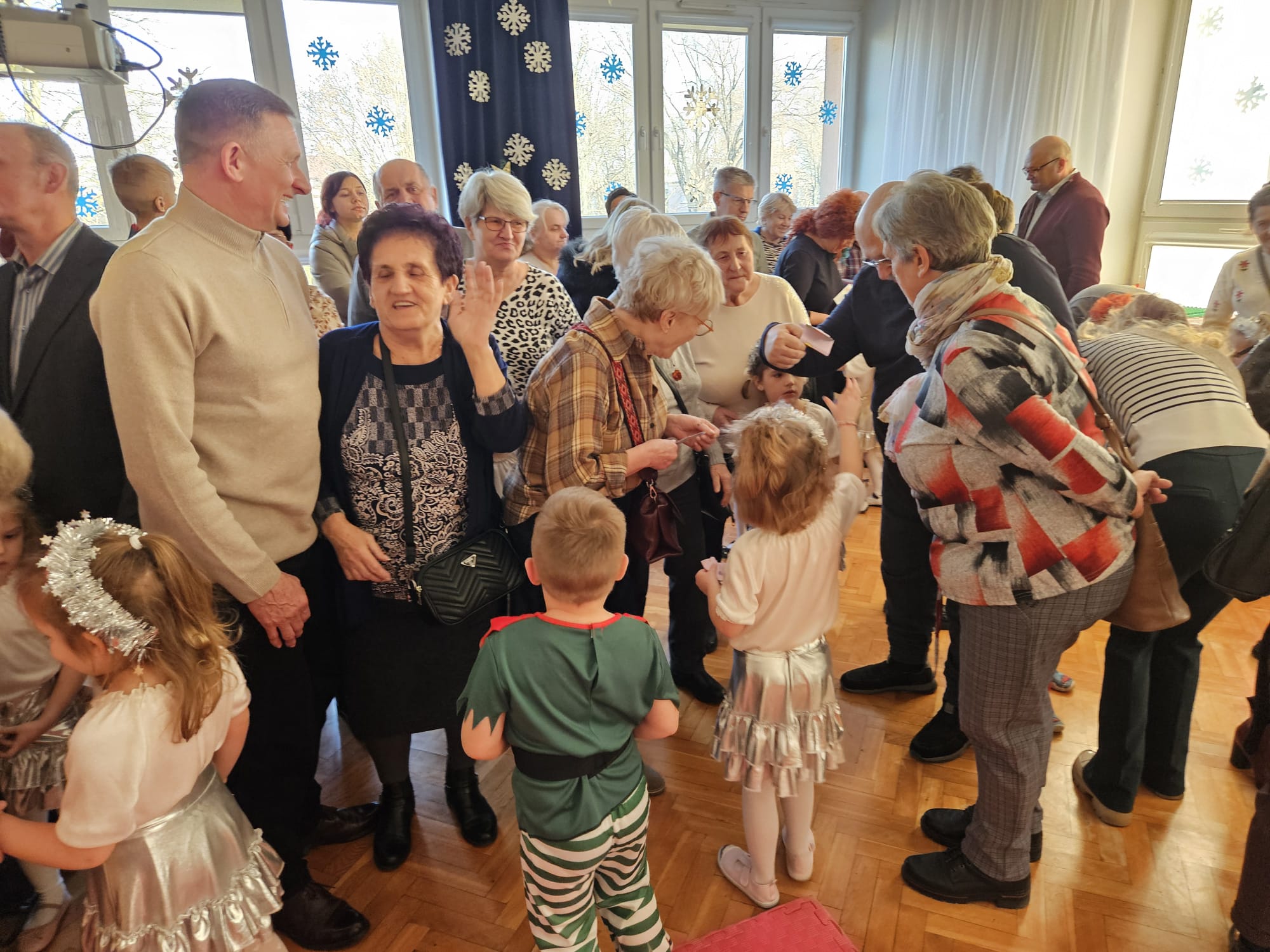 To prawdziwa gratka mieć w jednej chwili obok siebie babcie i dziadków. Nasi kochani stawili się licznie w przedszkolu. Pokazaliśmy się im od najlepszej strony. Na początek zaprezentowaliśmy się na scenie w części artystycznej. Piosenki, wiersze i krótkie inscenizacje z życzeniami dla zaproszonych gości. Potem życzenia osobiste, uściski, całuski i wręczanie laurek oraz wcześniej przygotowanych upominków. Na koniec wspólne zabawy taneczne z babciami i dziadkami czy wspólne muzykowanie. Babcie i dziadkowie nie chcieli wychodzić i zapowiedzieli się z wizytą za rok.