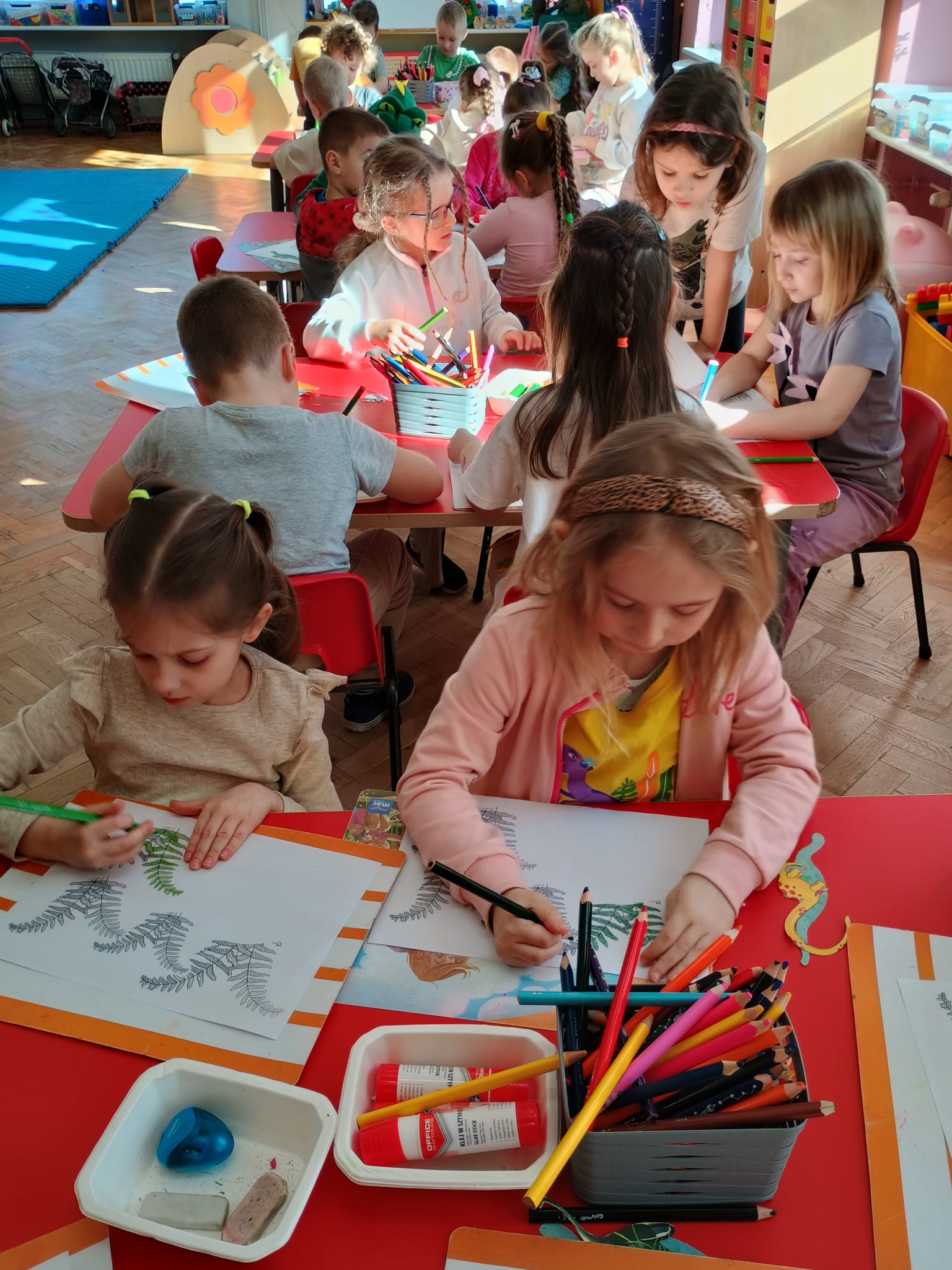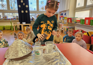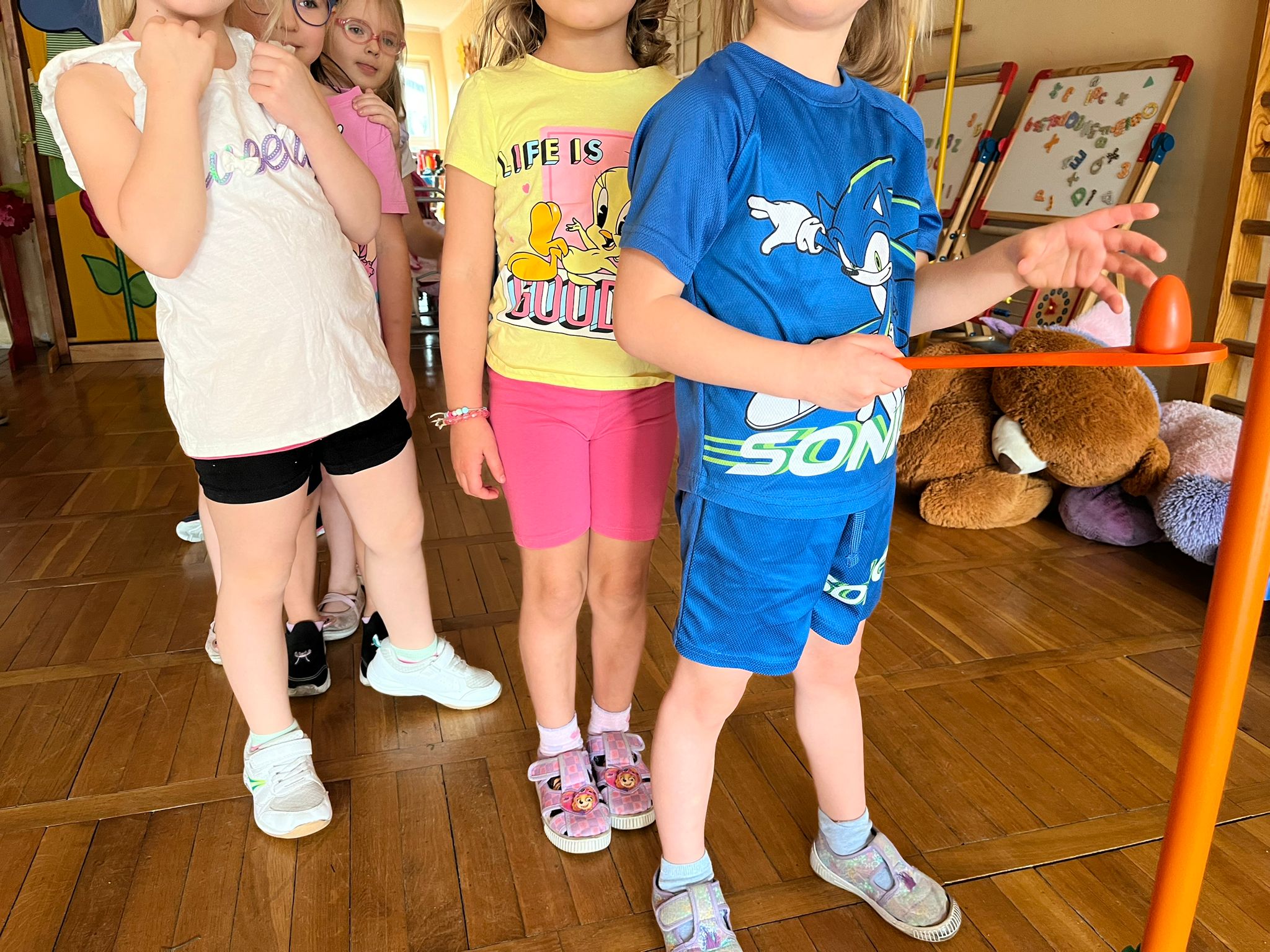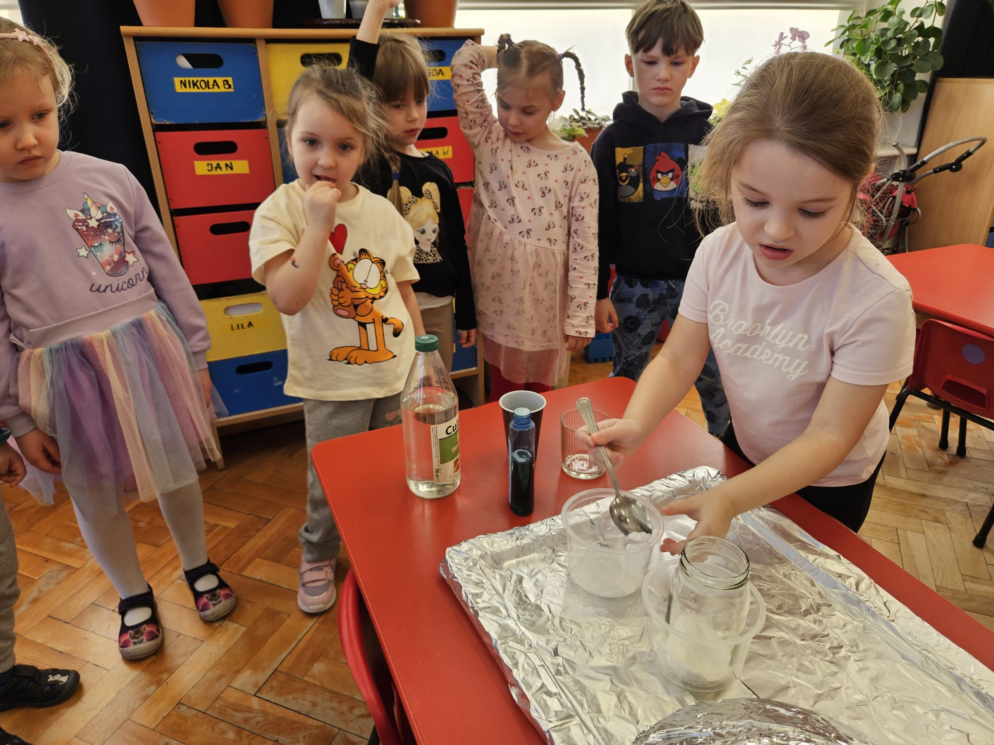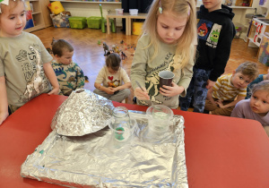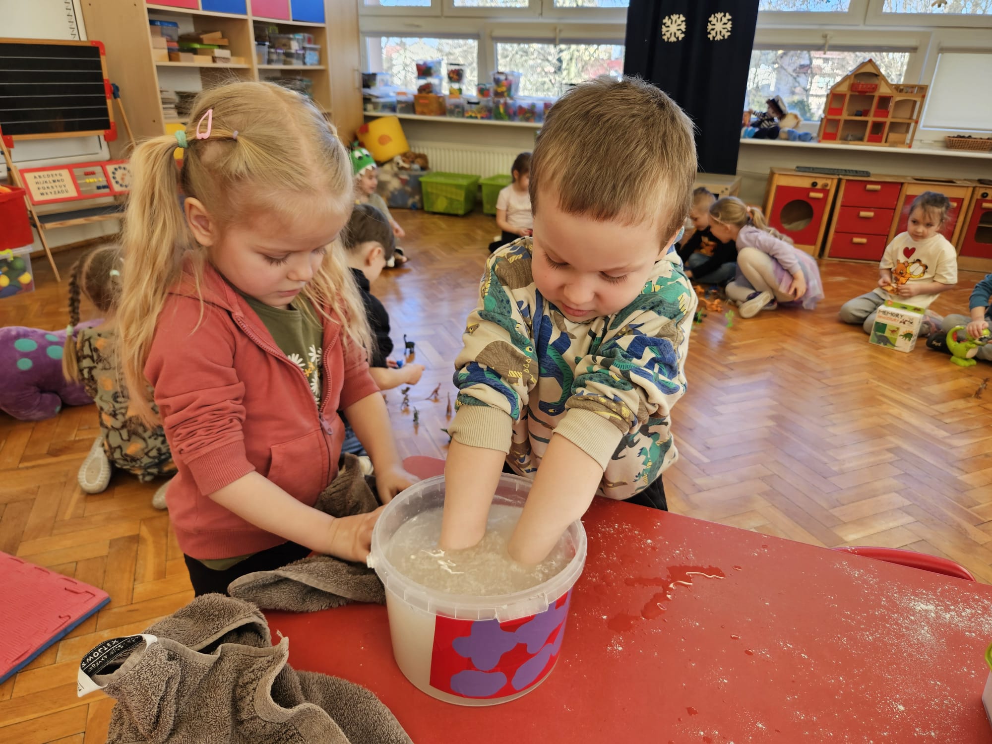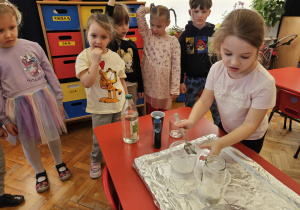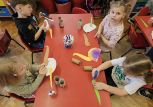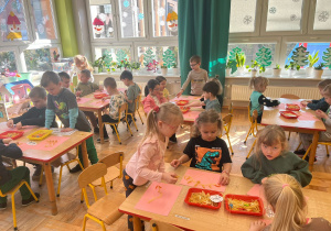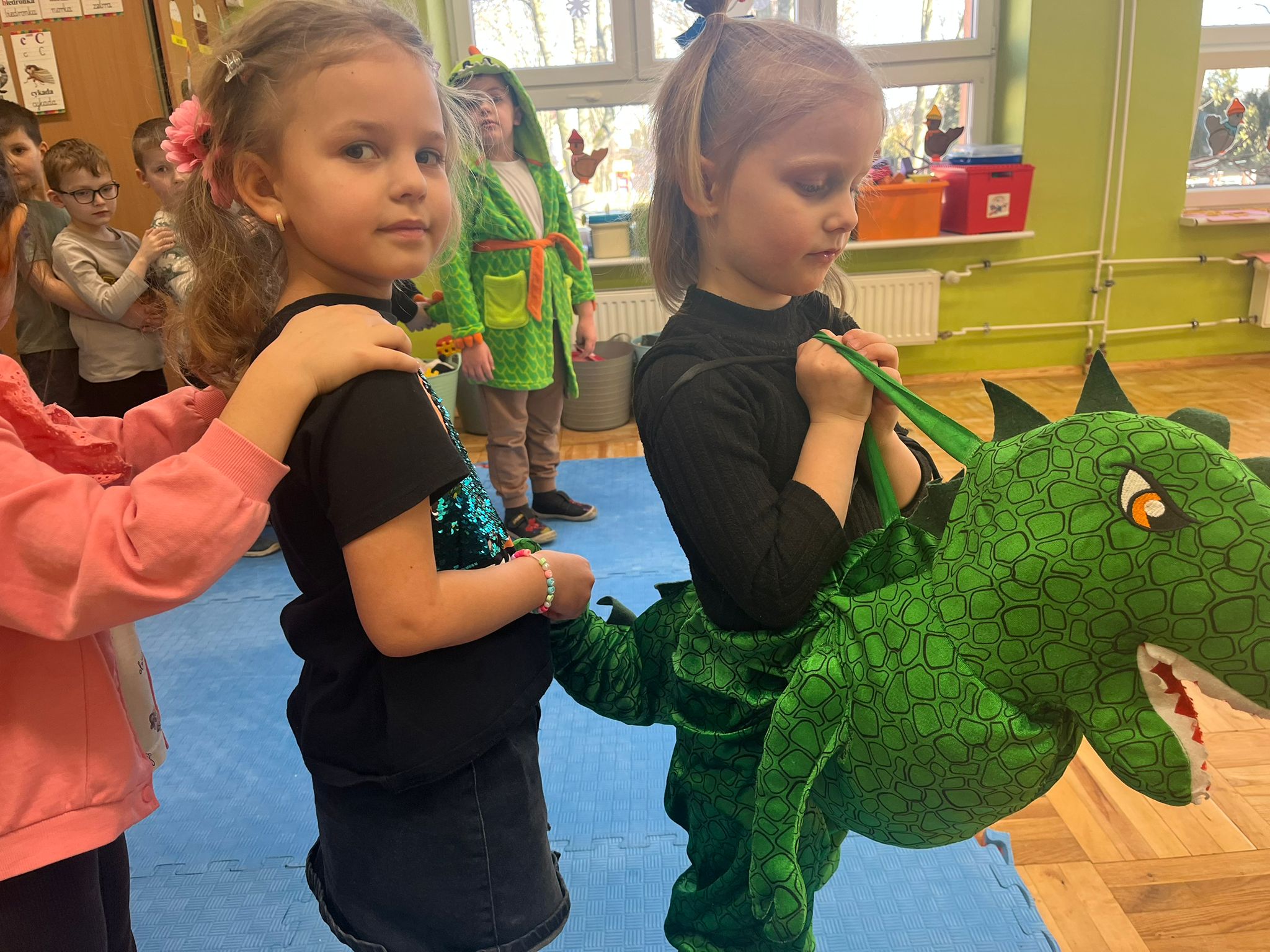 Od rana do przedszkola szliśmy bardzo ciekawi wydarzeń tego dnia. W torebkach i kieszeniach nieśliśmy dinozaury różnej wielkości. Niektórzy z nas przebrali się za dinozaury. Po poznaniu ciekawostek na ich temat i obejrzeniu naszych zbiorów przeszliśmy do zabaw z dinozaurami. Były zabawy badawcze - robiliśmy wybuch wulkanu z octu i sody, płynu do mycia naczyń i barwnika. Prowadziliśmy wykopaliska archeologiczne w mące. Układaliśmy szkielety dinozaurów w masie solnej. Układaliśmy dinozaury z części, tworzyliśmy prace plastyczne w jurajskim parku. To był niezwykły dzień.