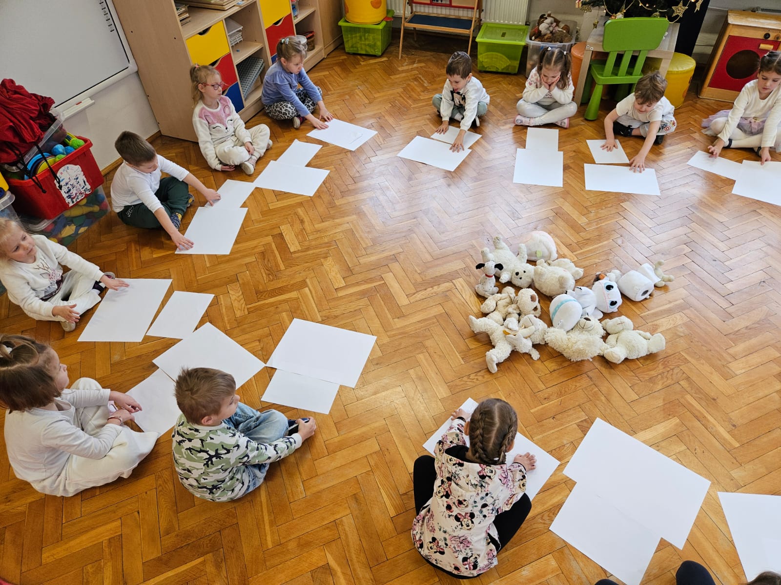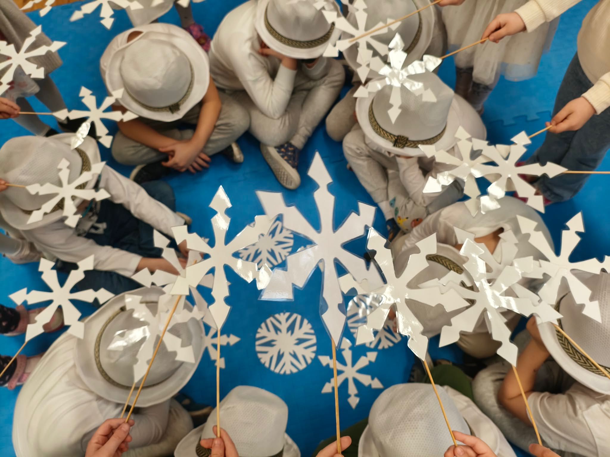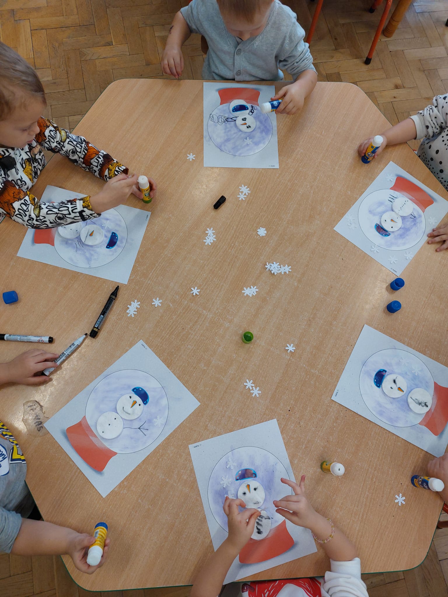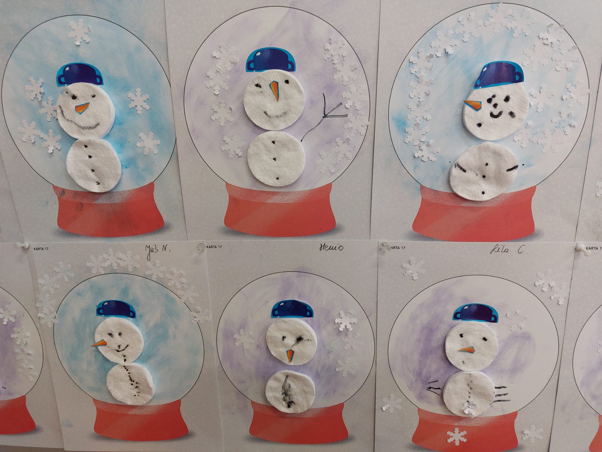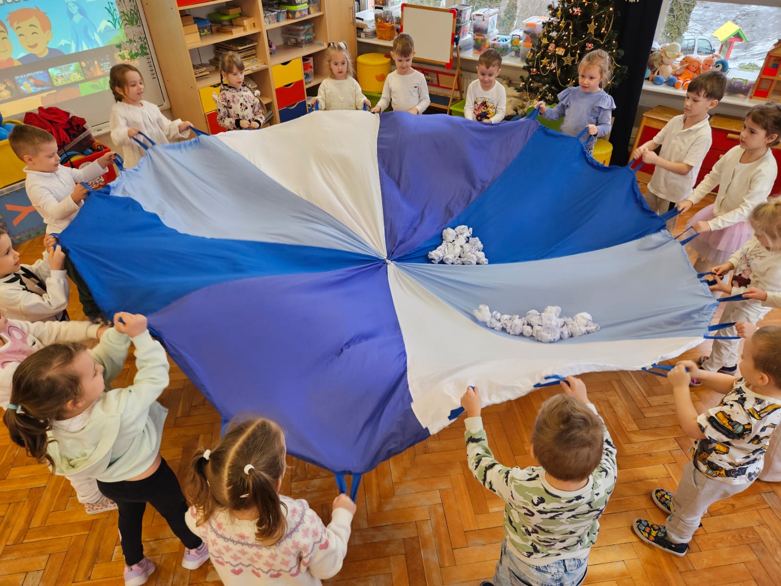 Dzień koloru białego a dla innych dzień śniegu. Tak czy siak i to białe i to. Choć pogoda zrobiła psikusa i śnieg stopniał to od rana w przedszkolu zrobiło się biało od naszych ubrań i przyniesionych białych maskotek. Okazało się biały kolor jest bardzo popularny w świecie zwierząt ale i roślin. Braliśmy udział w białym szaleństwie. Były bitwy na śnieżki, celowanie kulkami papieru do celu, zabawy z chustą animacyjną i śnieżnymi kulkami, zabawy z białym światłem w sali doświadczania świata, zabawy z białymi chustami i balonami i piórkami. Powstały białe obrazki - bałwanki z plasteliny, magiczne kule z bałwankiem, lodowe krainy, znikające śnieżne gwiazdki, obrazki na podświetlanej tablicy sensorycznej, ośnieżone drzewa. Na koniec picie mleka a wreszcie malowanie na mleku. To był niezwykły dzień.