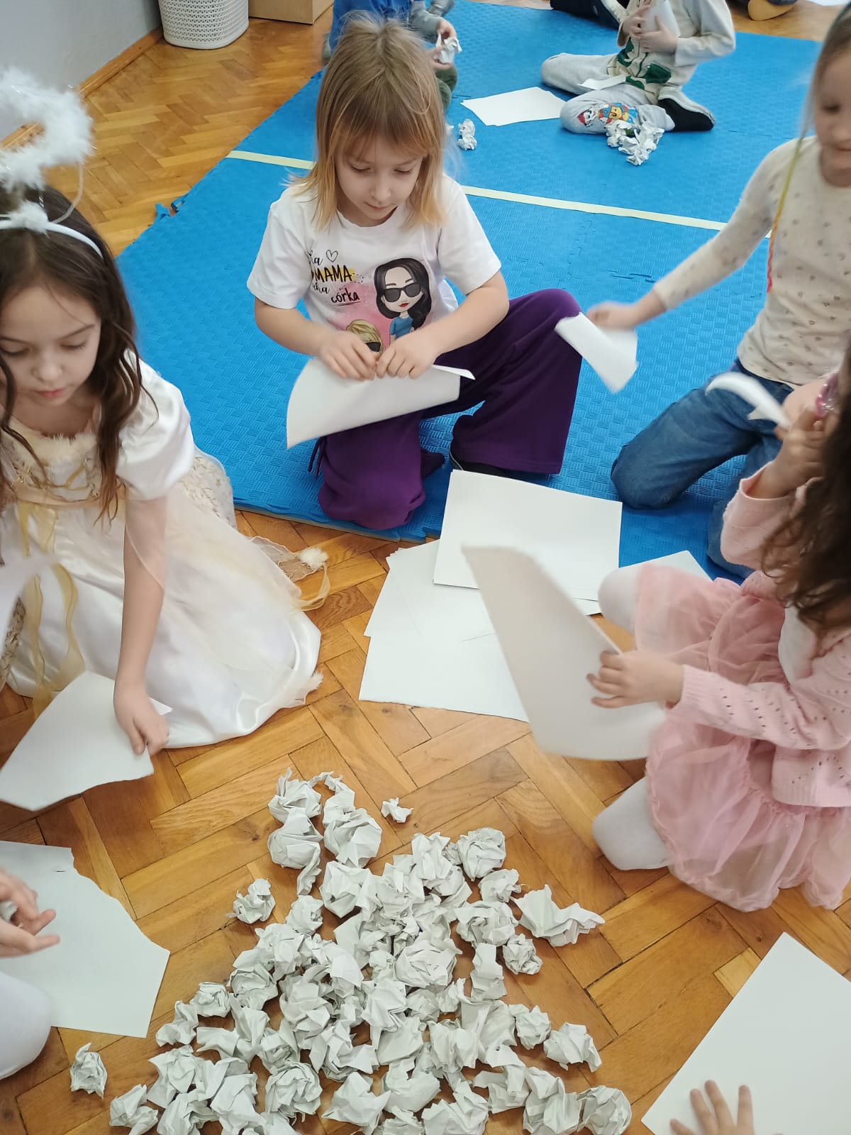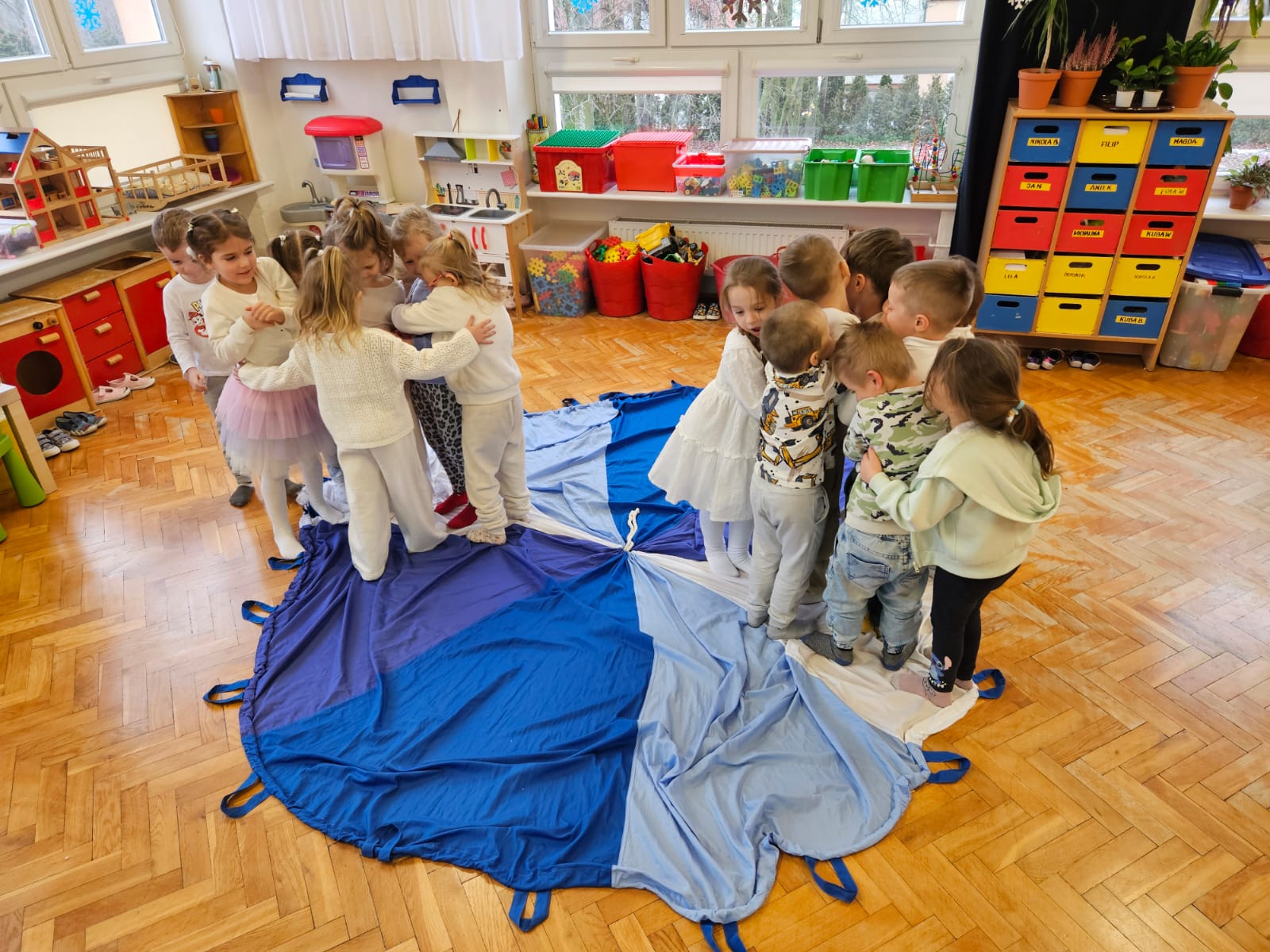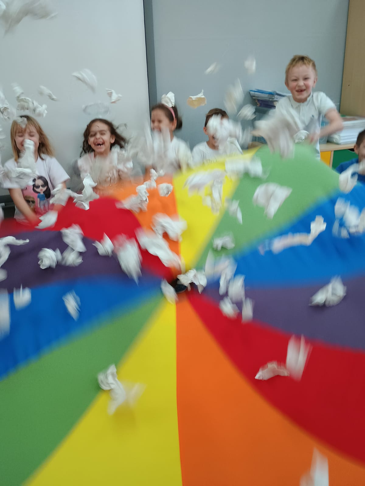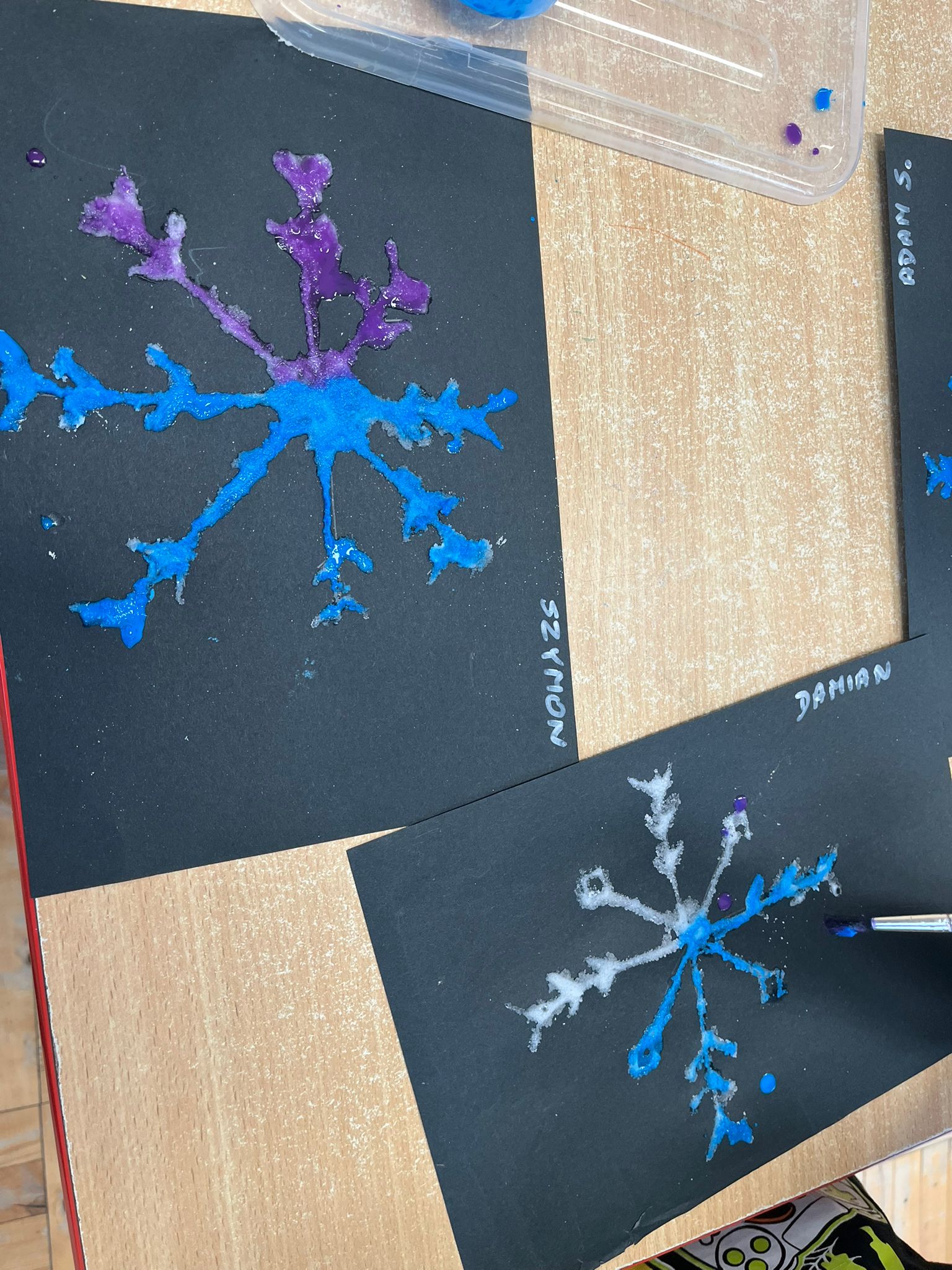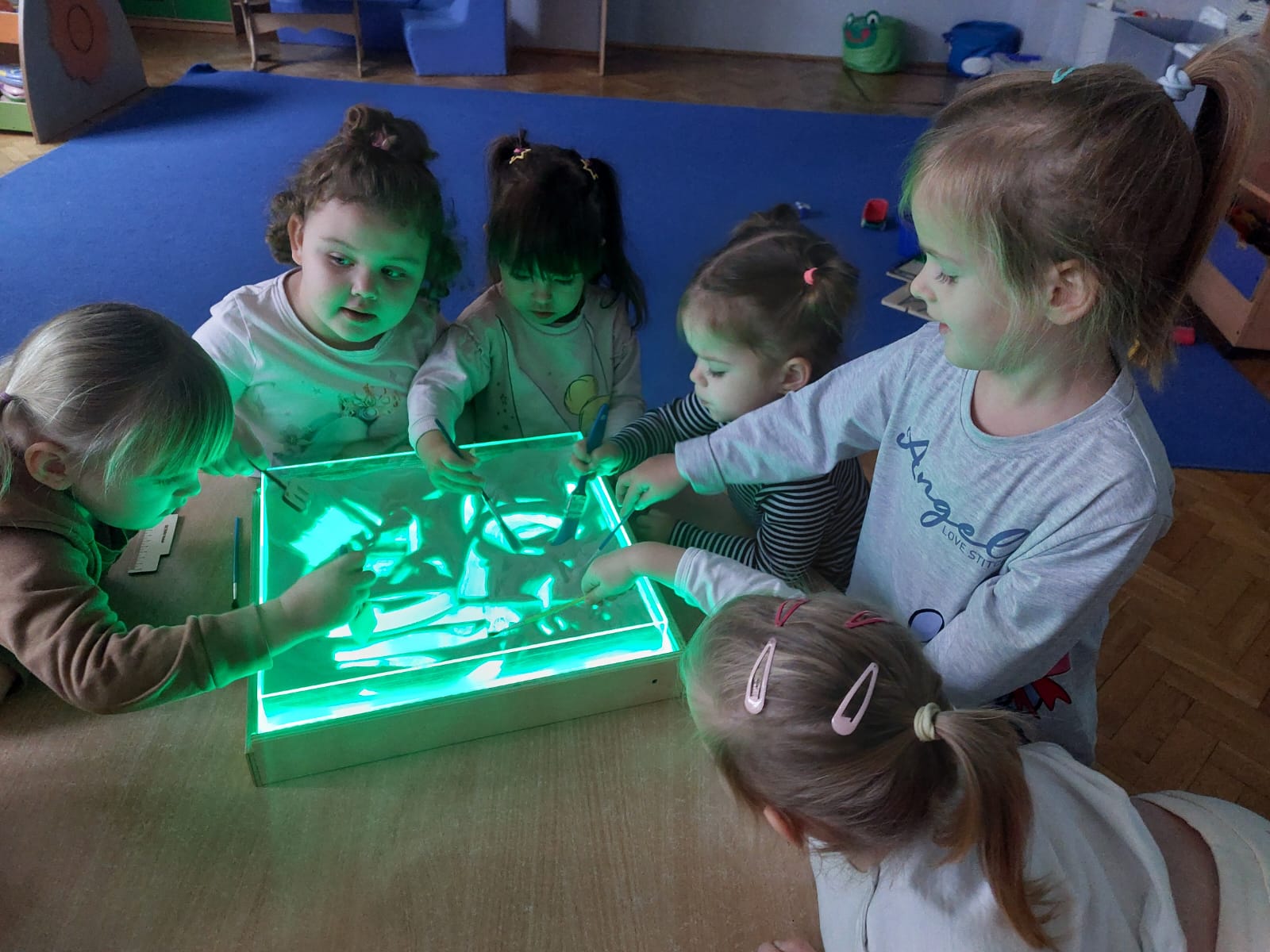 Dzień koloru białego a dla innych dzień śniegu. Tak czy siak i to białe i to. Choć pogoda zrobiła psikusa i śnieg stopniał to od rana w przedszkolu zrobiło się biało od naszych ubrań i przyniesionych białych maskotek. Okazało się biały kolor jest bardzo popularny w świecie zwierząt ale i roślin. Braliśmy udział w białym szaleństwie. Były bitwy na śnieżki, celowanie kulkami papieru do celu, zabawy z chustą animacyjną i śnieżnymi kulkami, zabawy z białym światłem w sali doświadczania świata, zabawy z białymi chustami i balonami i piórkami. Powstały białe obrazki - bałwanki z plasteliny, magiczne kule z bałwankiem, lodowe krainy, znikające śnieżne gwiazdki, obrazki na podświetlanej tablicy sensorycznej, ośnieżone drzewa. Na koniec picie mleka a wreszcie malowanie na mleku. To był niezwykły dzień.