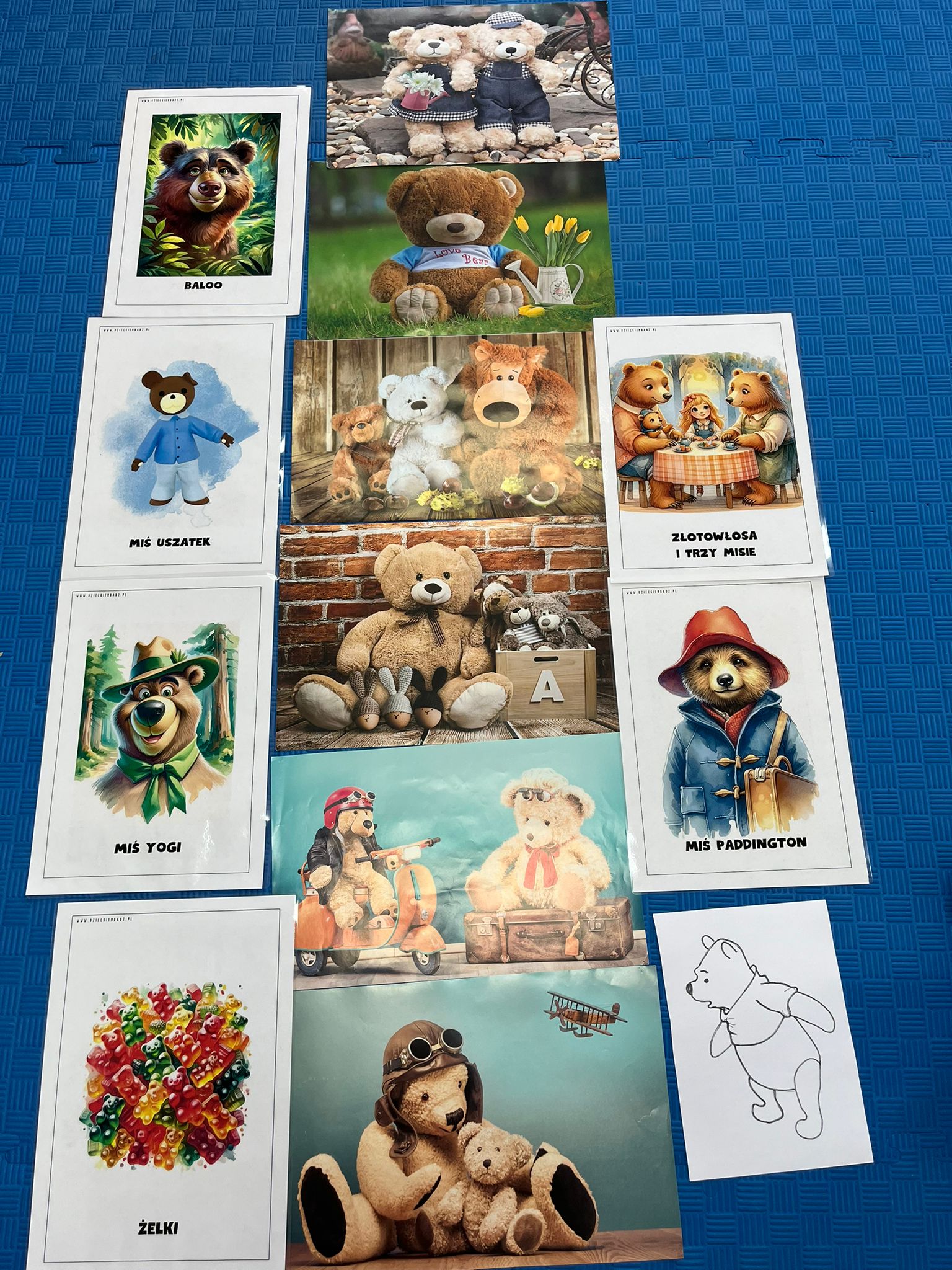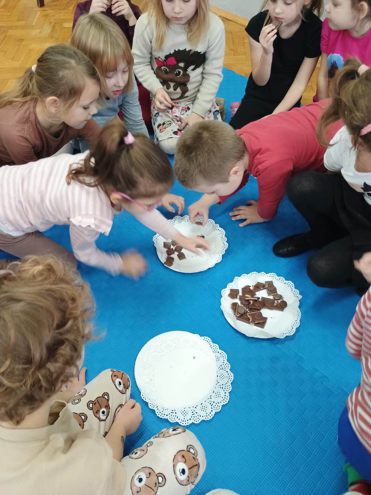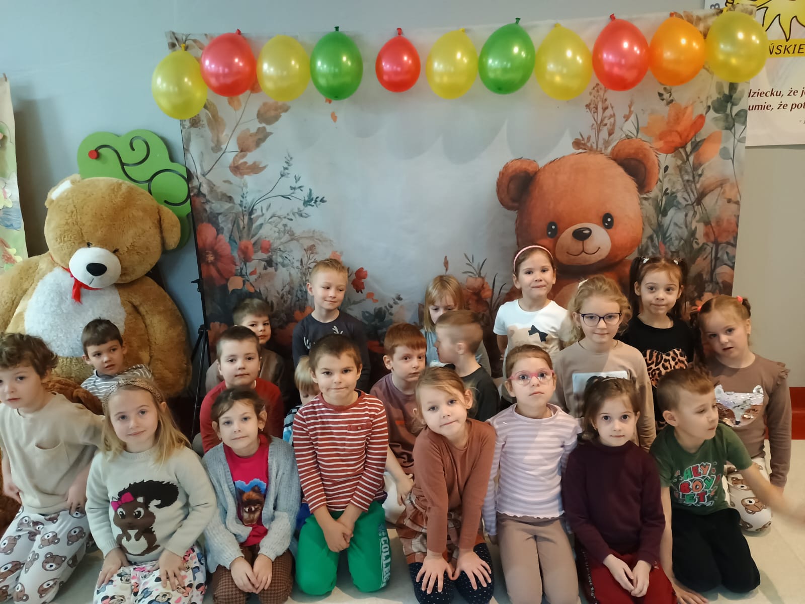 Staraliśmy się ubrać w tym dniu w odcieniach brązu. Przynieśliśmy również nasze misie, które nie zawsze są brązowe. Były zabawy z nimi i znana wszystkim zabawa "Stary niedżwiedź". Poznaliśmy misie ze znanych bajek. Były też zajęcia sensoryczne. Sami wykonaliśmy misiowe kanapki. Smarowaliśmy miodem albo czekoladą wafel, kroiliśmy banana, układaliśmy żurawinę i borówkę. Ale brązowa jest też czekolada i było słodko. Powstały również brązowe prace palstyczne - zamki na podstawie opowiadania o brązowej krainie.