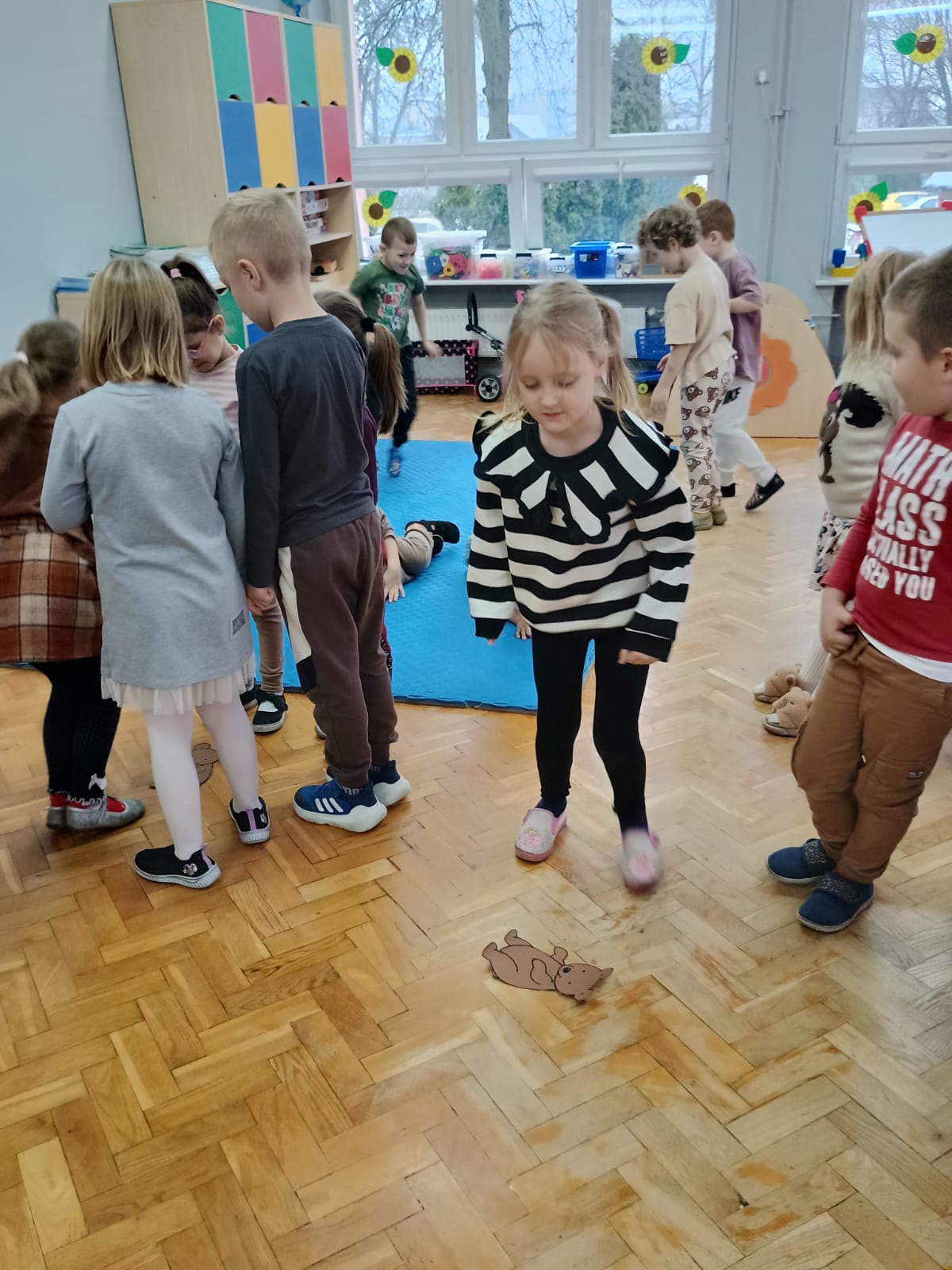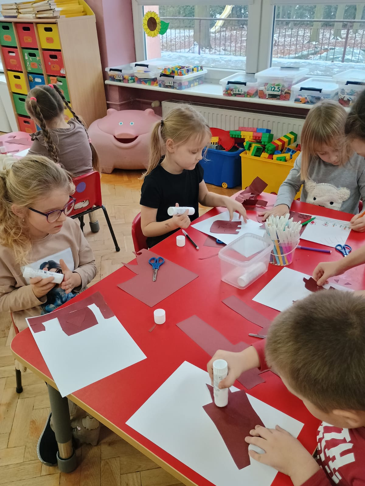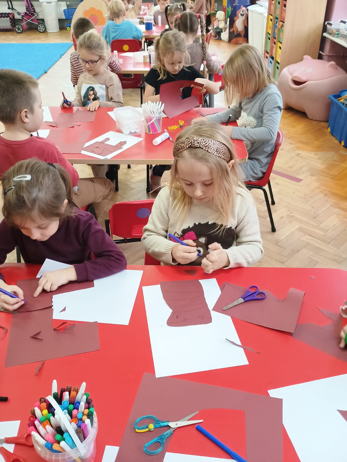 Staraliśmy się ubrać w tym dniu w odcieniach brązu. Przynieśliśmy również nasze misie, które nie zawsze są brązowe. Były zabawy z nimi i znana wszystkim zabawa "Stary niedżwiedź". Poznaliśmy misie ze znanych bajek. Były też zajęcia sensoryczne. Sami wykonaliśmy misiowe kanapki. Smarowaliśmy miodem albo czekoladą wafel, kroiliśmy banana, układaliśmy żurawinę i borówkę. Ale brązowa jest też czekolada i było słodko. Powstały również brązowe prace palstyczne - zamki na podstawie opowiadania o brązowej krainie.