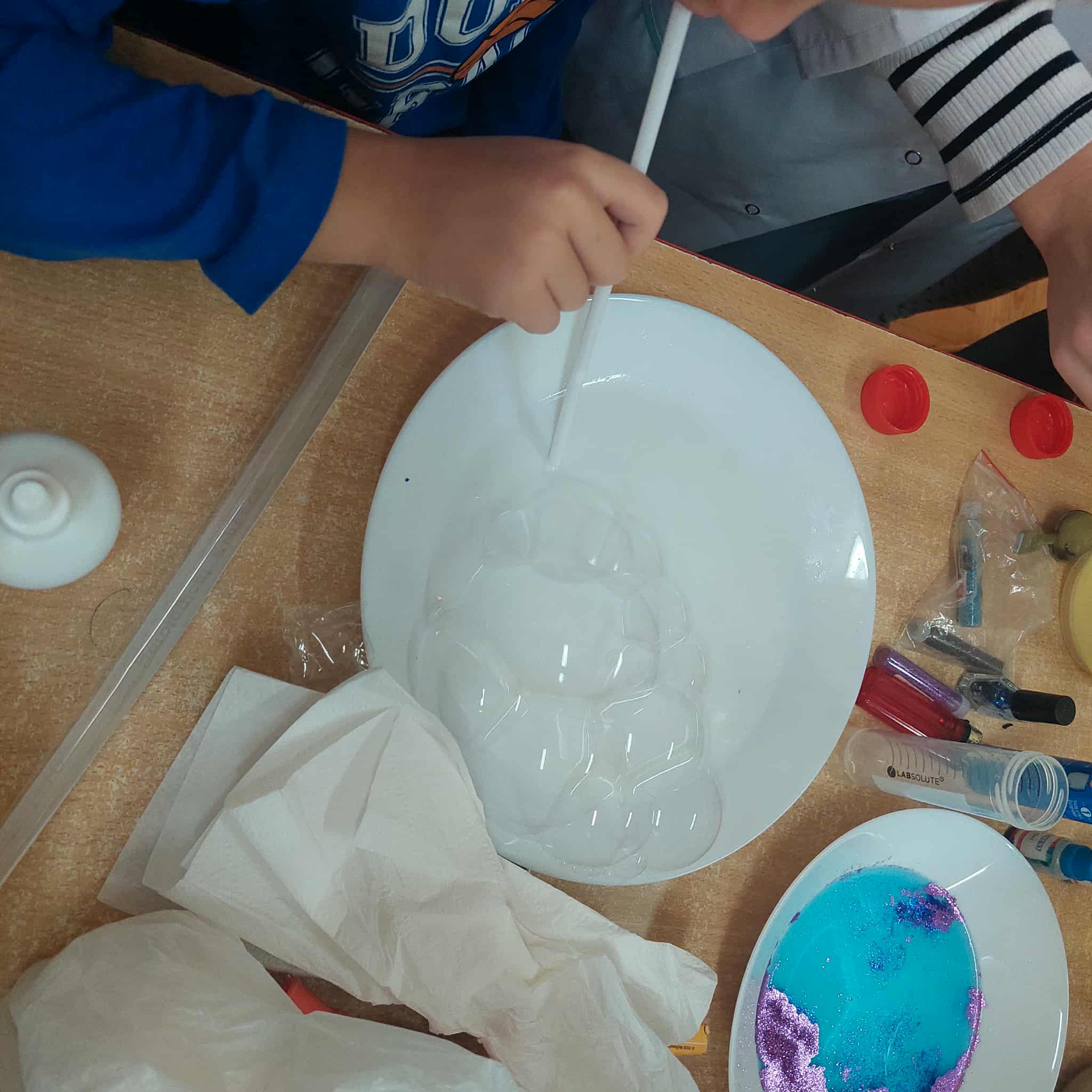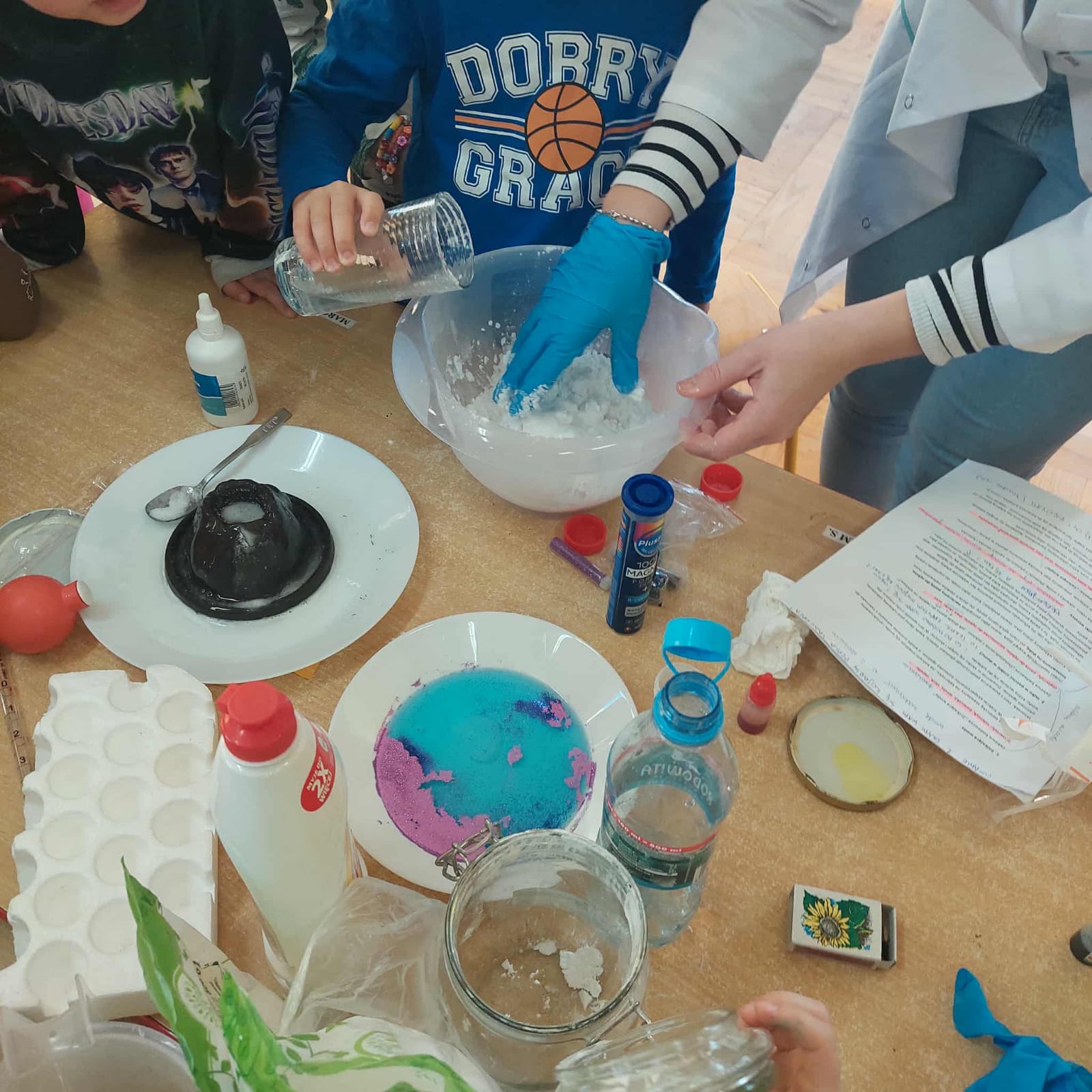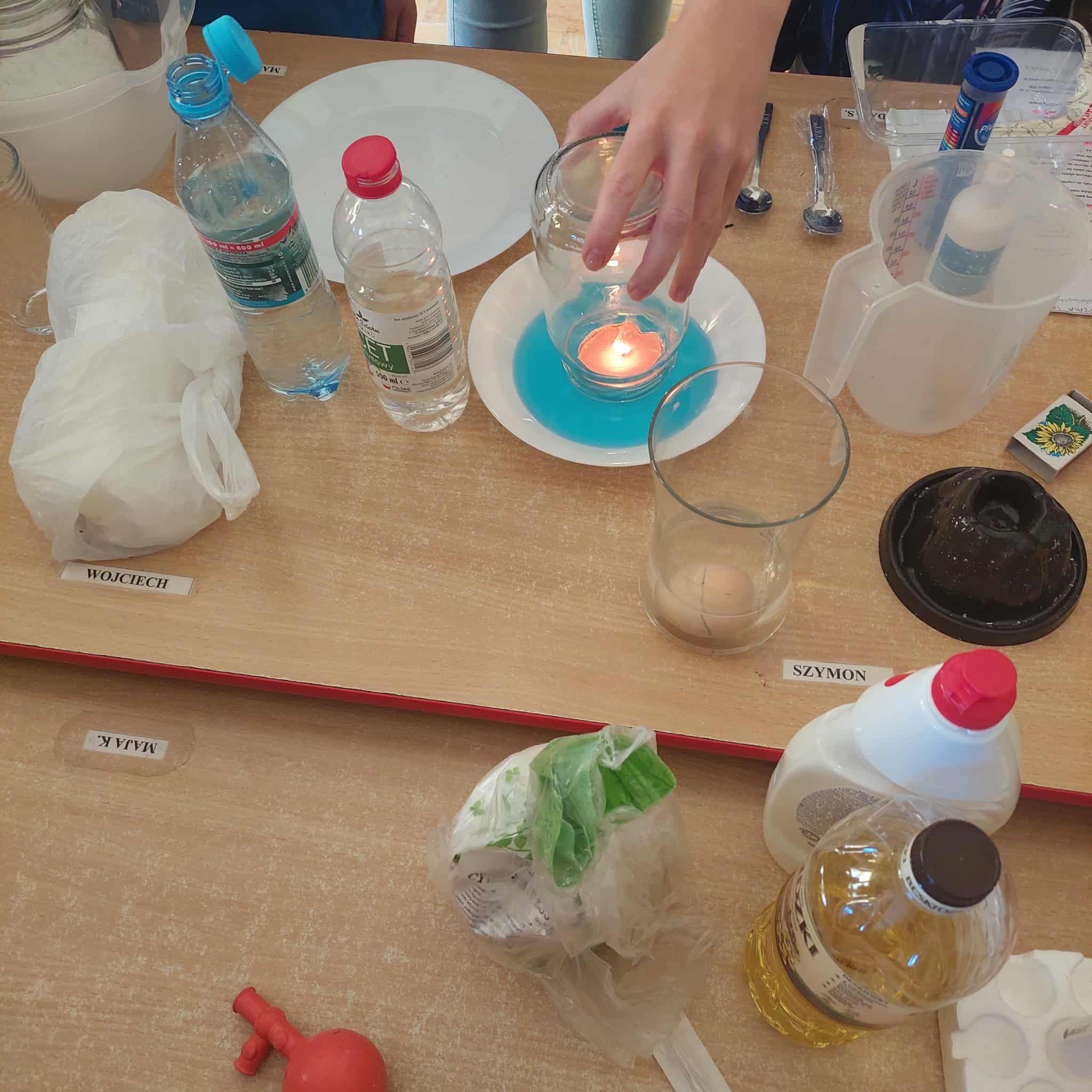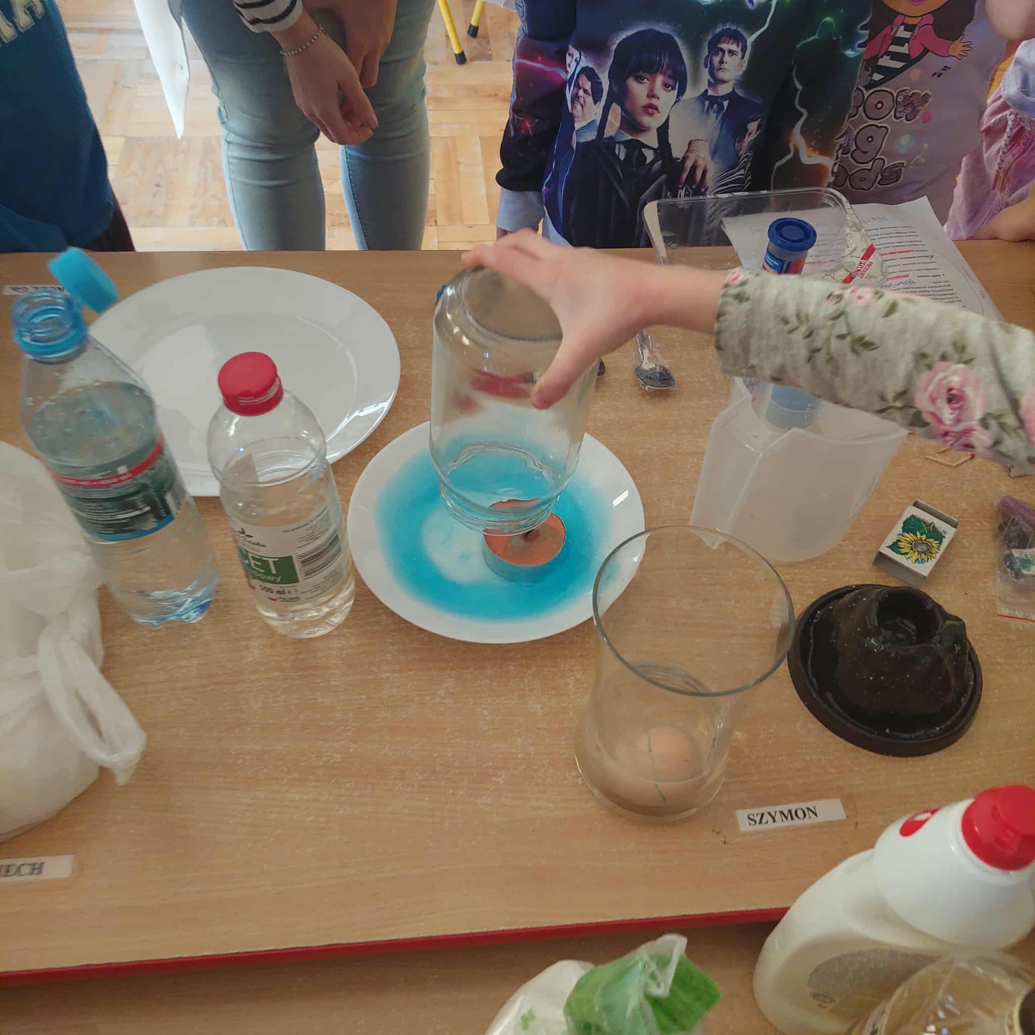 Odwiedziła nas mama Kacpra i opowiedziała o swojej pracy laborantki. Przeprowadziął znami ciekawe doświadczenia. Najbardziej podobało nam się doświadczenie z wulkanem i jajkiem. Były też inne jak choćby jajko w paście, bańki czy tańczące krople. Każdy chciał pomagać przy doświadczeniach.