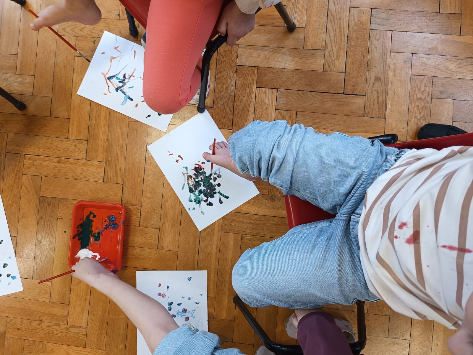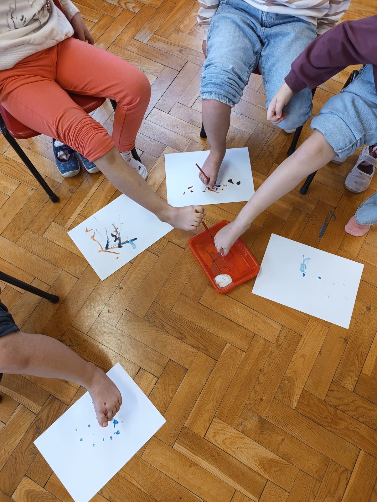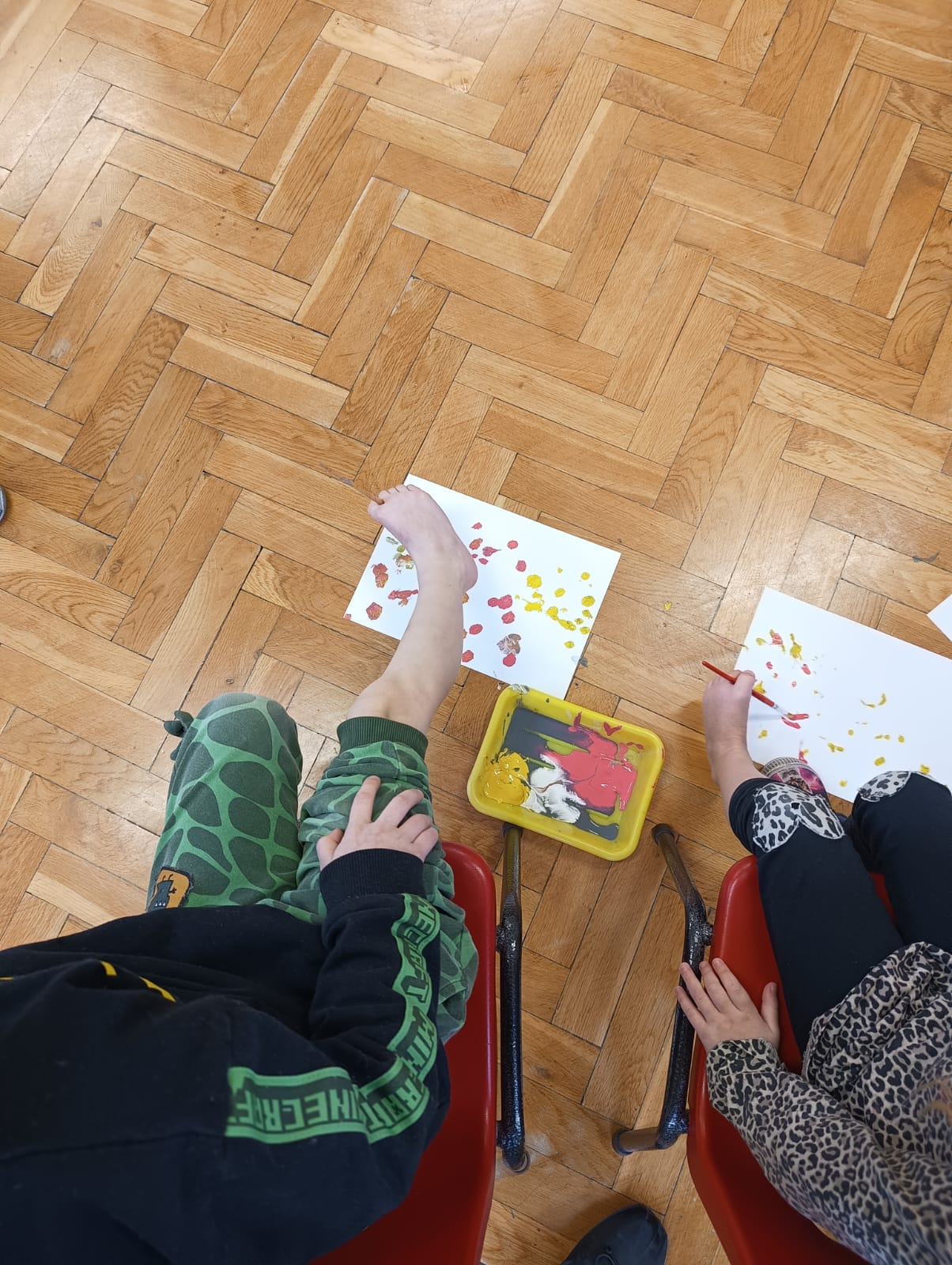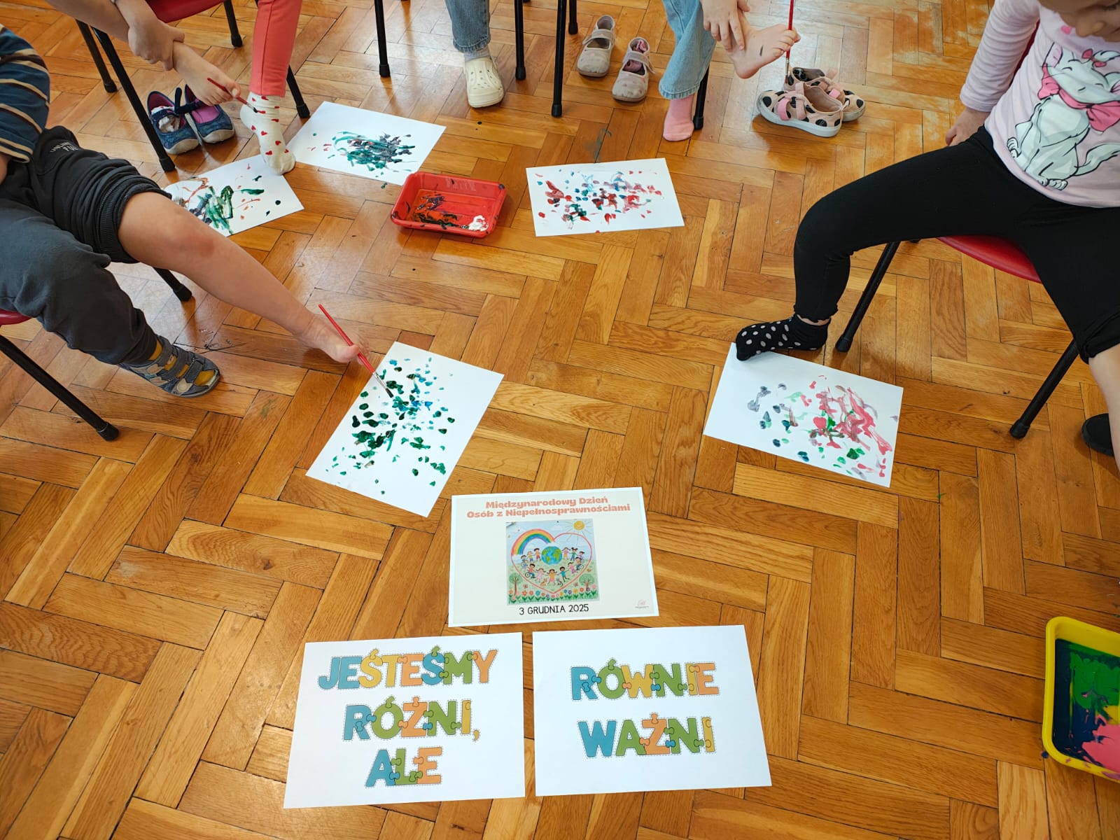 Wysłuchaliśmy bajkę "Leo i Nela". Dowiedzieliśmy się z jakimi niepełnosprawnościami mogą żyć dzieci i dorośli. Staraliśmy się zrozumieć i poczuć jak mogą czuć się takie osoby. Malowaliśmy stopami. Nie było to łatwe.