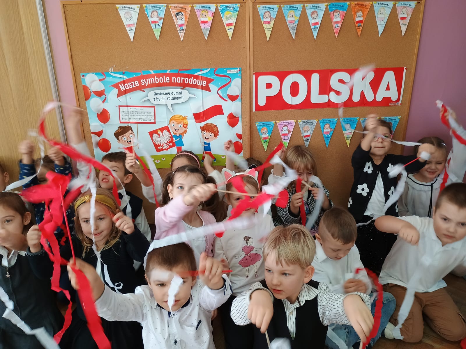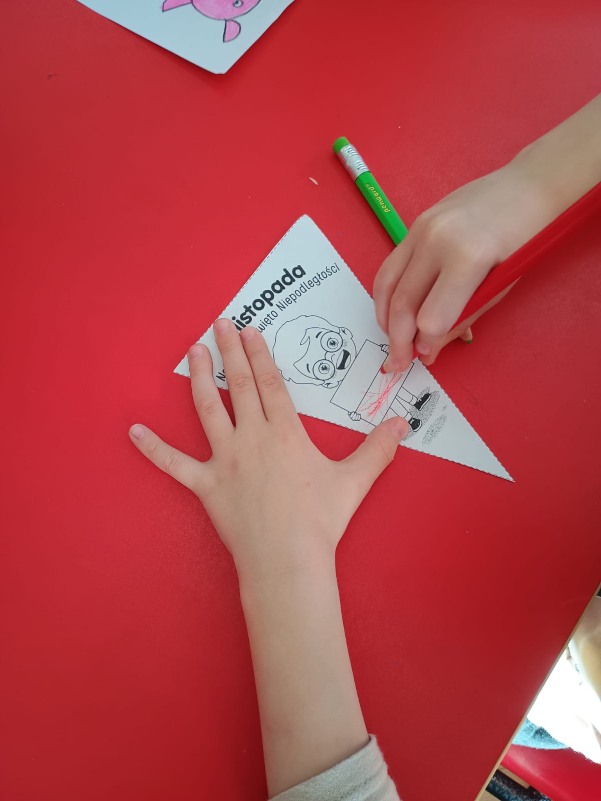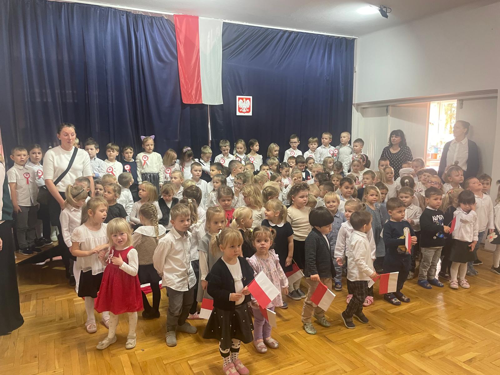 Mimo, że Święto Niepodległości przypada na 11 listopada to choć z opóźnieniem ale przygotowani przyszliśmy do przedszkola ubrani na galowo aby uczcić święto naszego kraju. Zebraliśmy się wszyscy i wspólnie odśpiewaliśmy hymn państwowy w postawie zasadniczej. Rozmawialiśmy o naszych barwach narodowych i je wykonywaliśmy. Każdy z nas jest dumny ze swojego kraju.