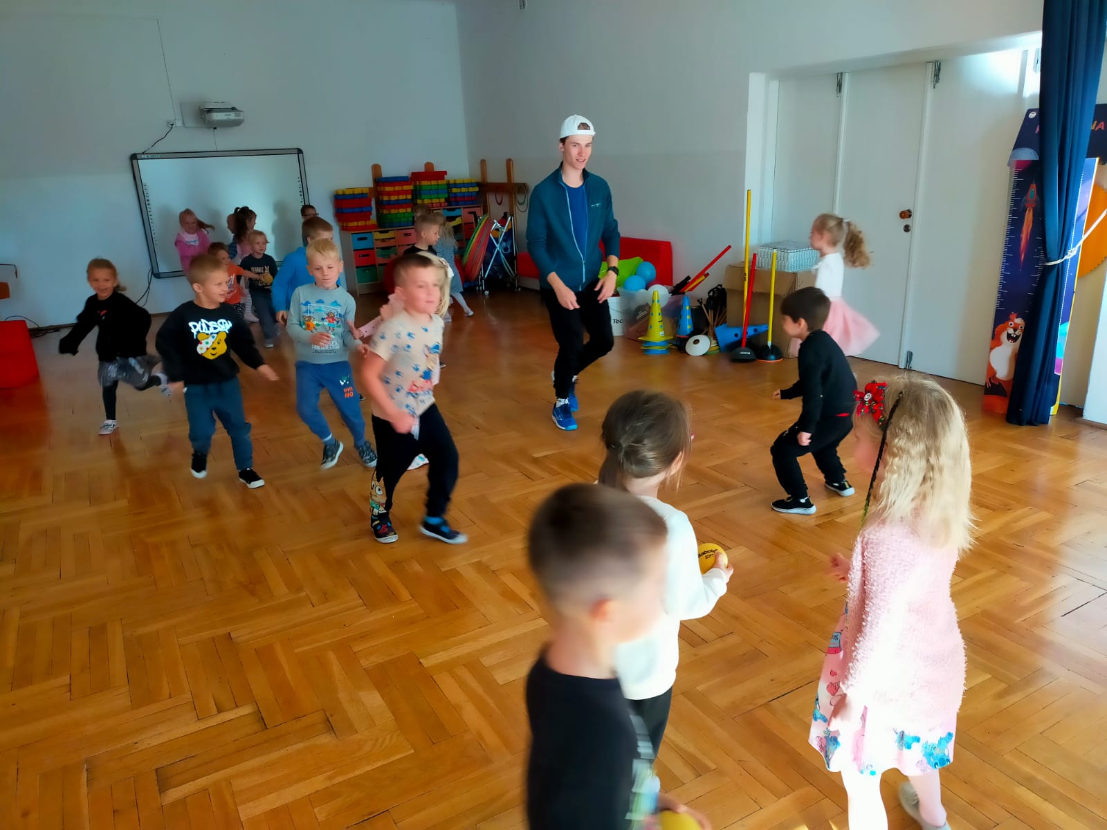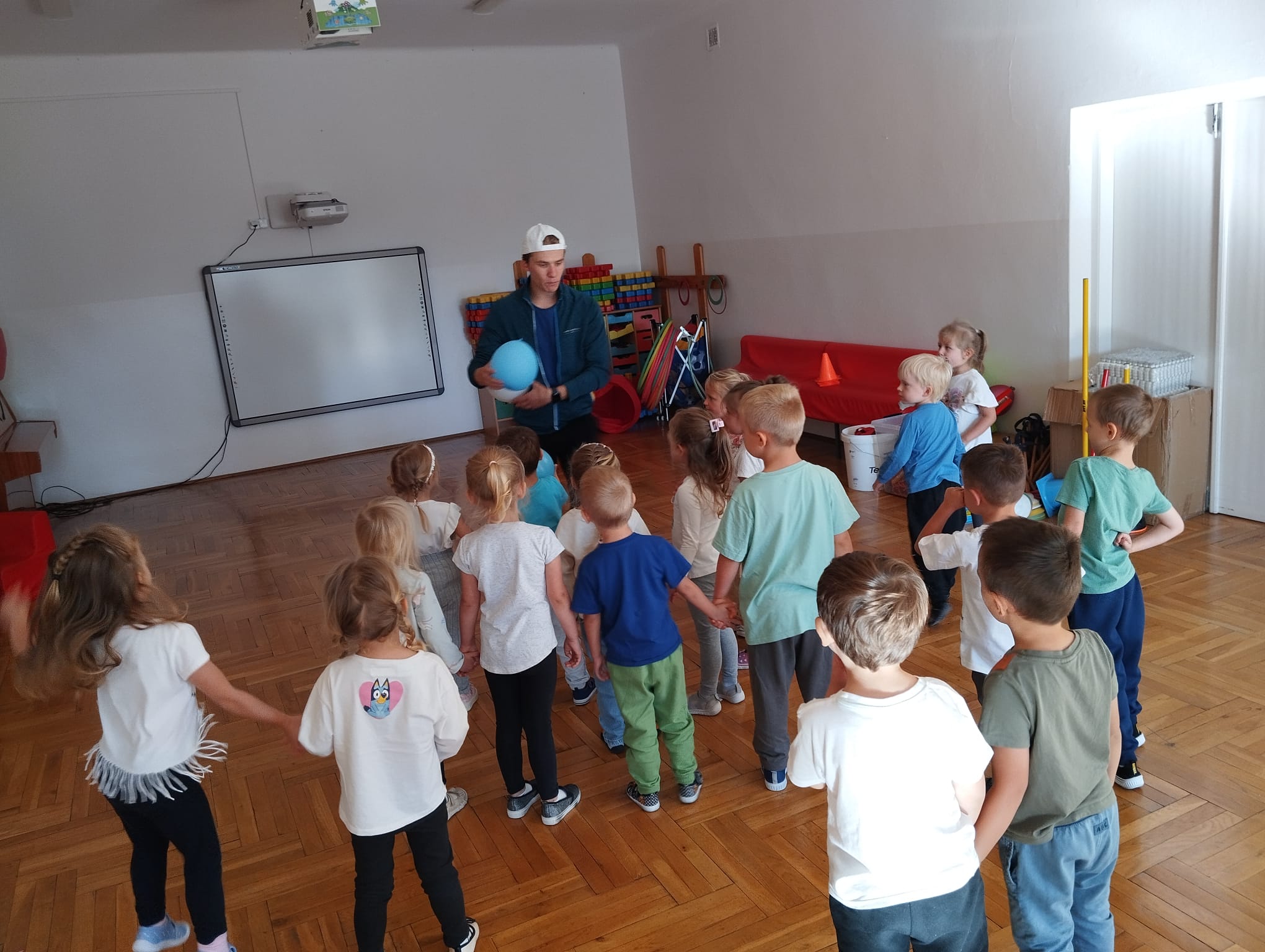 Kolejny trener zawitał do nas i poprowadził z nami zabawy ruchowe. Uwielbiamy takie zajęcia.