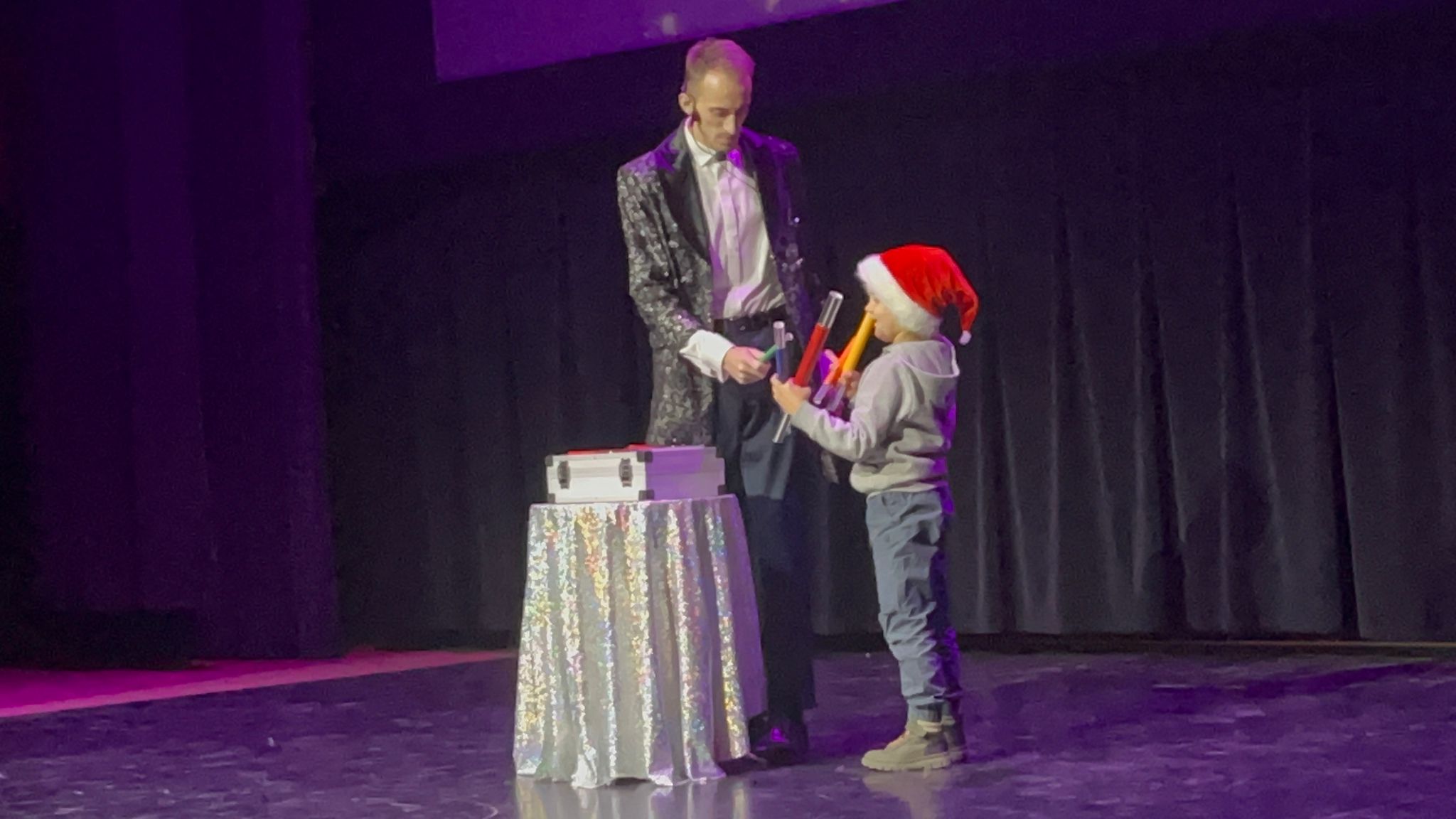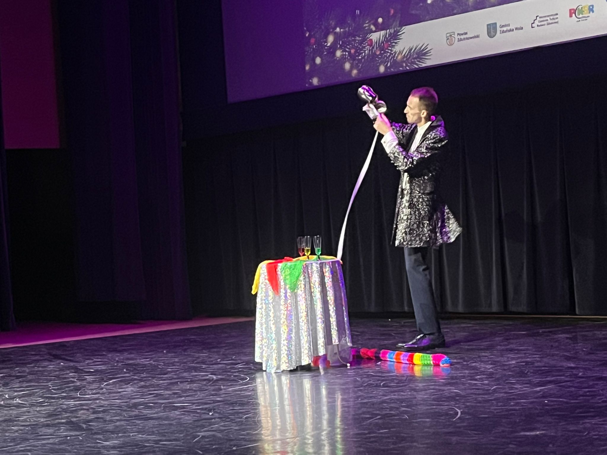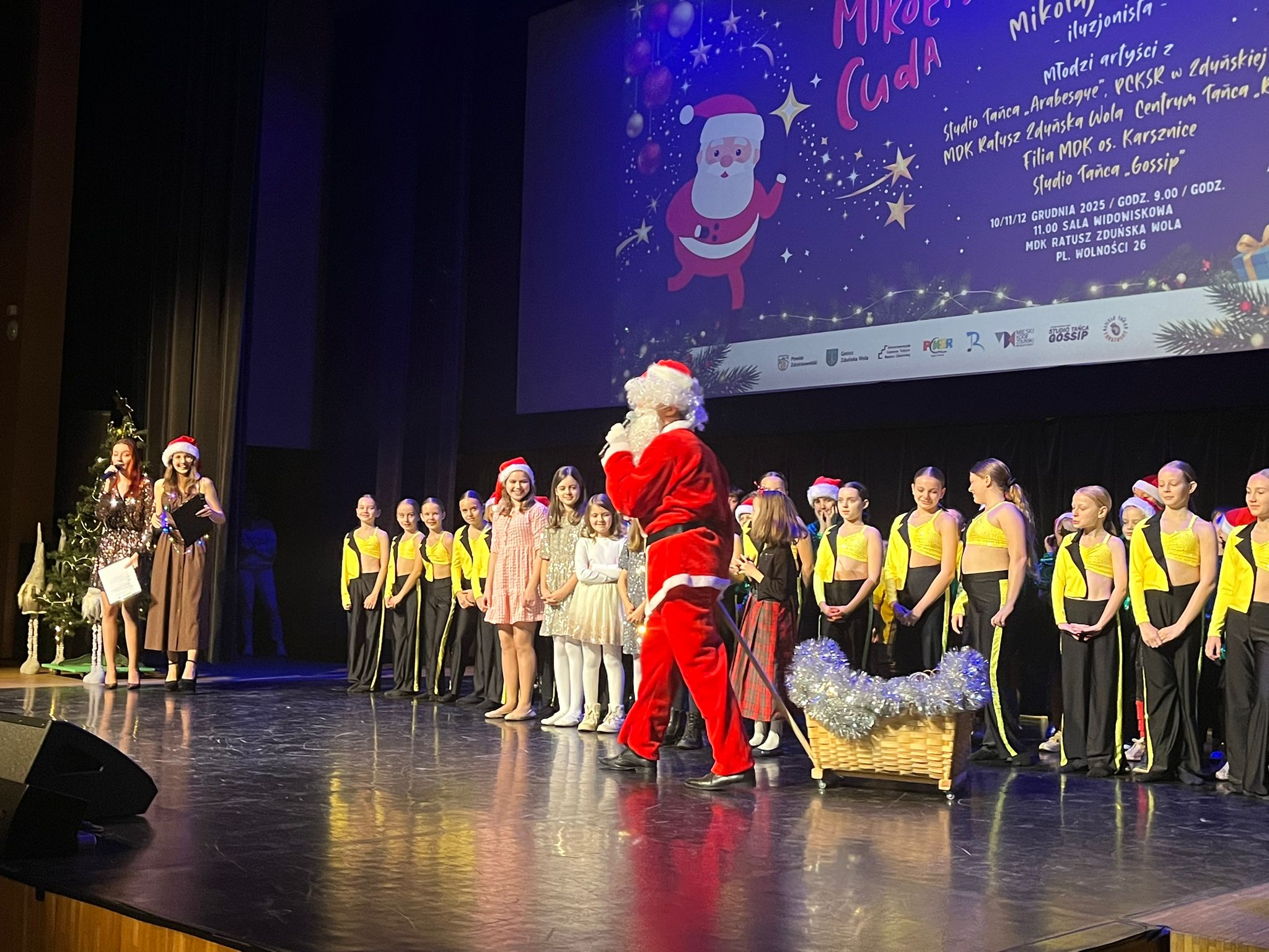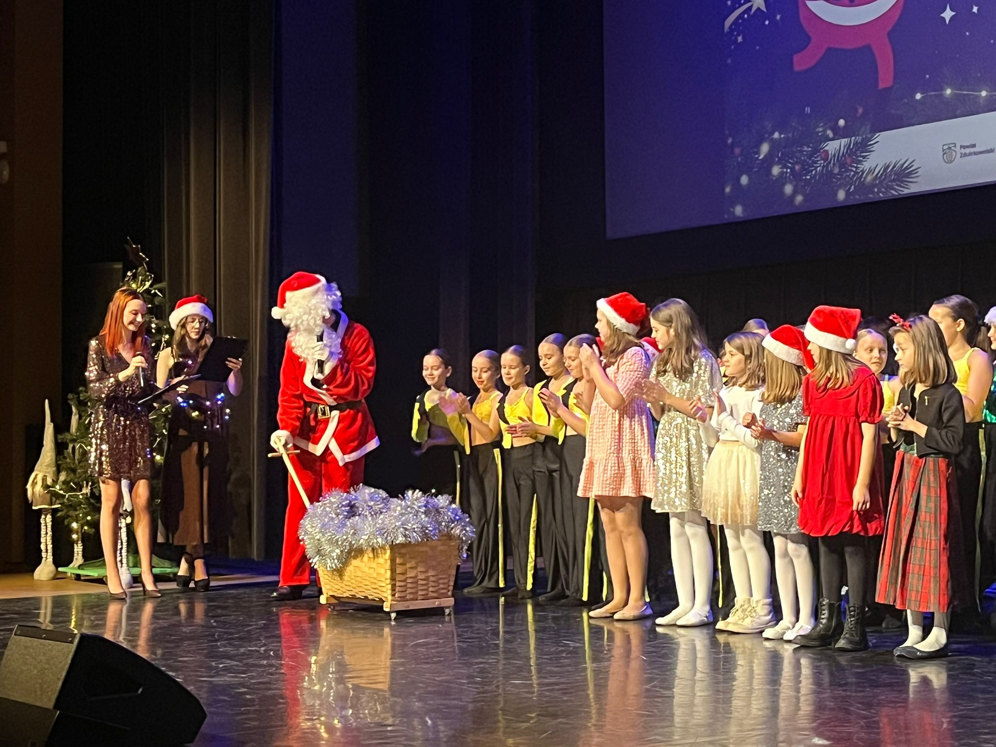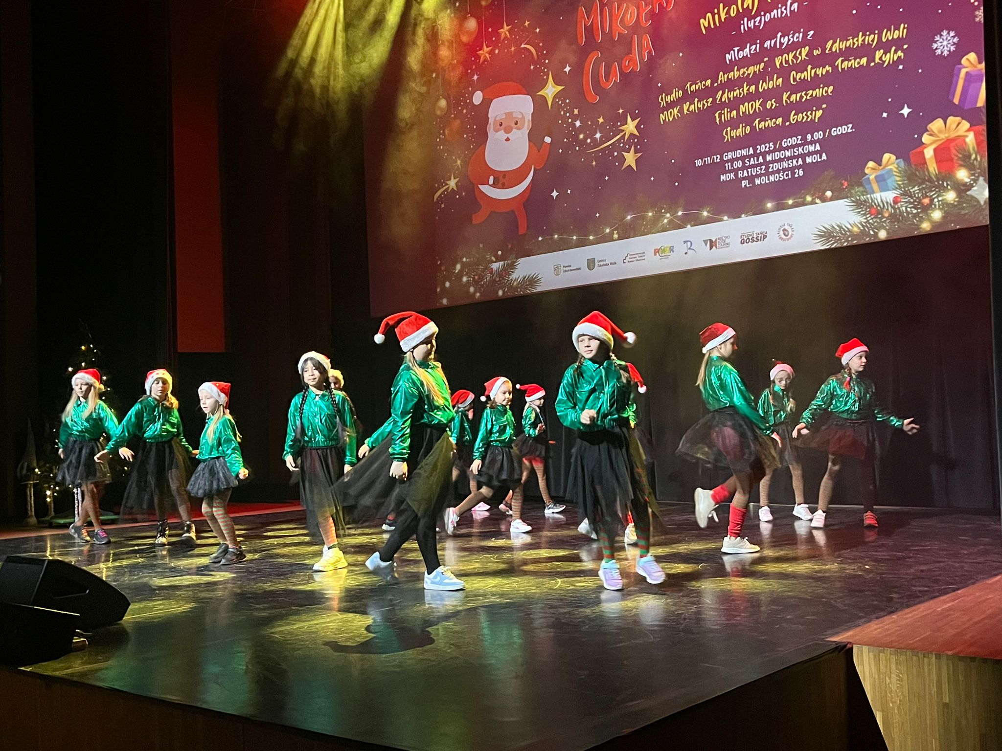 Wybraliśmy się do Ratusza Miejskiego w Zduńskiej Woli na koncert zorganizowany przez Stowarzyszenie Rozwoju Dzieci i Młodzieży w Zduńskiej Woli, Miejski Dom Kultury CI Ratusz, Powiatowe Centrum Kultury, Sportu i Rekreacji w Zduńskiej Woli, Studio Tańca ARABESQUE oraz Studio Tańca Gossip. Mogliśmy obejrzeć występy zespołów tanecznych, i wokalnych dzialających w Zduńskiej Woli oraz sztuczki w wykonaniu Czarodzieja Mikołaja. Nawet nasz kolega znalazł się na scenie i pomagał Czarodziejowi jak umiał. Każdy dostał od Mikołaja słodkie upominki.